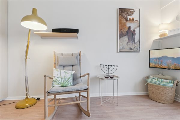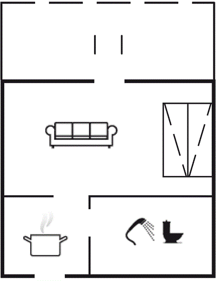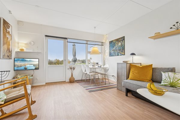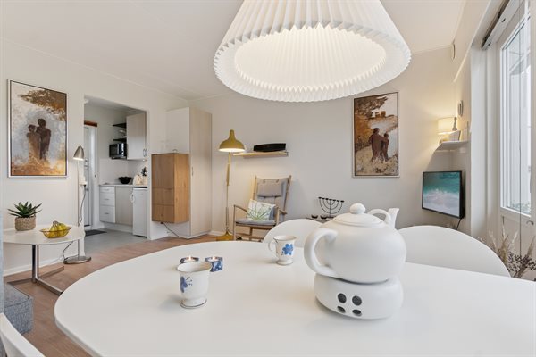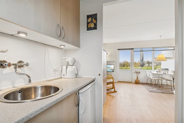 Lys ferielejlighed på 27 kvadratmeter beliggende med den fineste udsigt ud over markerne i det skrånende terræn og ud over Østersøen med Christians Ø i det fjerne. Ferielejligheden er indrettet med stue, mindre køkken, indbydende badeværelse og dobbelt sovesofa i stuen. Fra den lille afskærmede terrasse kan man følge naturens gang, og solens vej over himmelen. I den store fælles udendørspool kan man i sommervarmen få en svalende svømmetur - man kan også tage vejen ned til sandstranden i Sandkås og opleve Østersøens bølger.