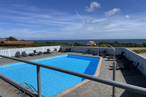 Denne lyst indrettede og indbydende ferielejlighed ligger i rolige og naturskønne omgivelser med udsigt over Østersøen og kysten fra Sandkås og helt til Gudhjem. Ferielejligheden er beliggende i feriekomplekset Boesvang, med adgang til kyststien, som forbinder Allinge og Gudhjem. Til feriekomplekset hører en opvarmet, udendørs swimmingpool (10,0 x 9,0 x 2,0 m), der er åben i perioden 15.06.-15.09. Til lejligheden hører åben terrasse med havemøbler. Derudover er 2 cykler tilknyttet lejligheden. Boesvang ligger i gåafstand (1 km) fra Allinge og 2 km fra Tejn med flere gode restauranter, bager og supermarkeder. I Allinge og Sandvig er der i løbet af sæsonen en række aktiviteter, bl.a. Jazz-festivalen og koncerter. Der er også gode muligheder for udflugter til Middelaldercentret, Bornholms Kunstmuseum og Rø Golfbane.