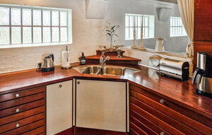 Tilbring ferien i denne stilfulle og romslige ferieleiligheten, som kombinerer moderne komfort med landlig idyll. Her bor du i et renovert uthus, med en rolig beliggenhet, men likevel innen rekkevidde av mange utfluktsmuligheter. Slå deg ned i de koselige lenestolene i det åpne oppholdsrommet, eller tilbring sosiale kvelder ved biljardbordet. Tilbered favorittrettene dine på det vakre kjøkkenet. Her er det god plass til å lage mat sammen. Frokost og middag smaker spesielt godt ved det lange spisebordet med utsikt over hagen.