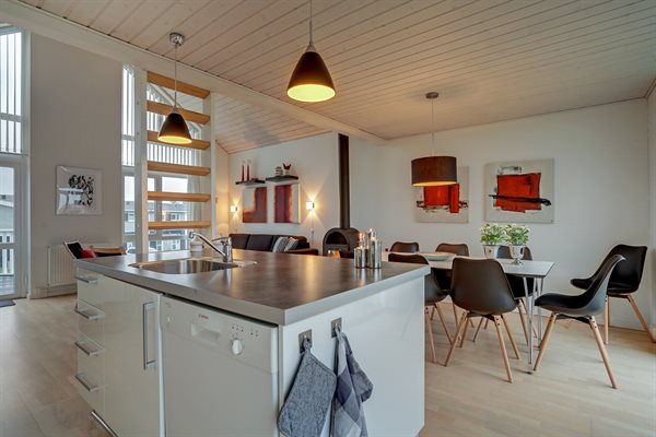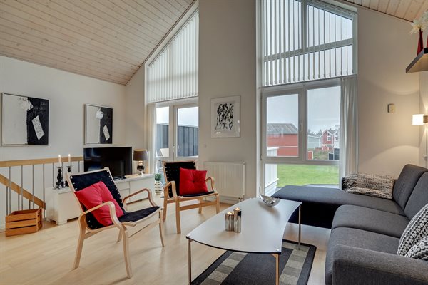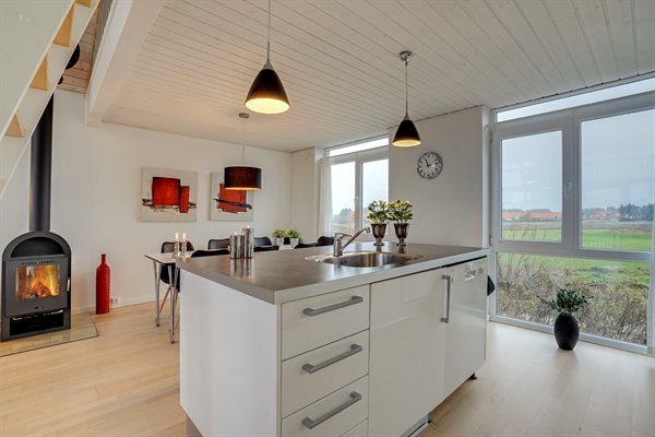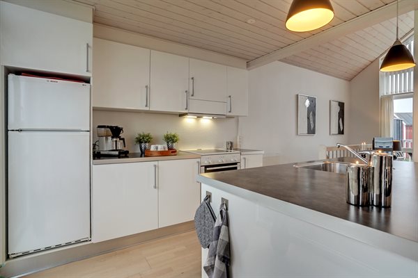 En lejlighed for golfspillere! Lejligheden er nabo til Pay & Play banen og har udsigt over denne. Golfklubben i Løkken byder på både en velholdt 18 hullers bane, med søer og vandløb, samt en 9 hullers par tre bane. Par tre banen er åben hele året og bruges primært som en Pay & Play bane, hvor selv nybegyndere kan få en god oplevelse. Ud over golf byder Løkken på en af Danmarks bedste badestrande. Fra lejligheden er der kun 700 m til den brede hvide sandstrand med mole og fiskerbåde, som trækkes op på stranden. Der fører tunnel til by og strand således, at al trafik fra vejen undgås. Lejligheden ligger i gåafstand til byens centrum med et hyggeligt torv, der er omgivet af butikker og restauranter. Om sommeren hersker her en sydlandsk stemning og butikkerne har åbent hele året rundt. Løkken er også kendt for sin gamle bydel, hvor de gamle fiskerhuse er bygget sammen i lange rækker. Løkken Svømmehal ligger centralt for lejlighedens lejere og er et attraktivt mål i al slags vejr. Lejligheden er indrettet lyst og indbydende med store vinduer i begge gavle som giver et fantastisk lysindfald. Desuden adgang til hems med 2 sovepladser og god udsigt over golfbanerne. Hemsen fungerer også som hyggeafdeling for børn med bl.a. sækkestole. I opholdsstuen er der udgang til terrasse med havemøbler, hvorfra der også er udsigt til den ene legeplads.