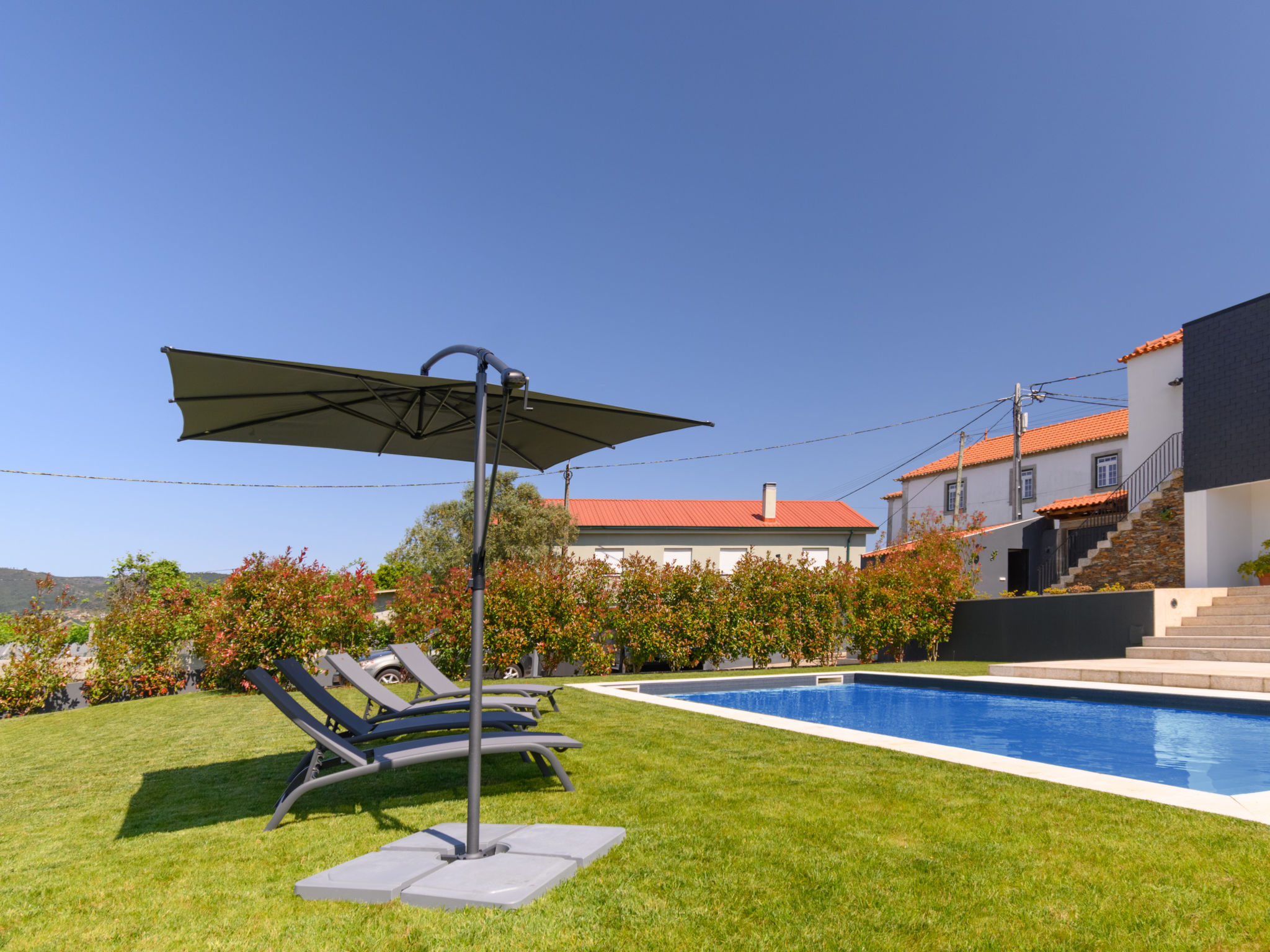 "Douro Escape", 6 rom hus 106 m2 på 2 etasjer. Romlig, fullstendig renovert i 2021, vakkert og moderne møbler: stor stue/spisestue med panoramavindu med, spisebord, bar, kabel-TV, air-conditioning og varmluft oppvarming. Utgang til hagen, til terrassen, til badebassenget. Kjøkken (stekeovn, oppvaskmaskin, 4 keramiske kokeplater, brødrister, vannkoker, mikrobølgeovn, elektrisk kaffemaskin, Internet(Nespresso (not inc))) med, air-conditioning og varmluft oppvarming. Sep. WC, dobbel servant. øverste etasje: 1 rom med, 1 dobbeltseng (160 cm, lengde 200 cm), dusj/WC, air-conditioning og varmluft oppvarming. 1 rom med 2 senger (90 cm lengde 200 cm), dusj/WC, air-conditioning og varmluft oppvarming. 1 rom med 2 senger (90 cm lengde 200 cm), dusj/WC. 1 rom med, 1 dobbeltseng (160 cm, lengde 200 cm), dusj/WC, air-conditioning og varmluft oppvarming. 1 stort rom med, 1 dobbeltseng (160 cm, lengde 200 cm), dusj/bidèt/WC, air-conditioning og varmluft oppvarming. Terrassemøbler, grill, liggestoler (8). Meget vakker utsikt av svømmebassenget og landskapet. Fasiliteter: vaskemaskin, strykejern, høy barnestol barneseng for barn opp til 2 år, hårføner. Internett (trådløs LAN [WLAN], gratis). Vennligst merk: røykfri bolig. Ingen heis. 132474/AL