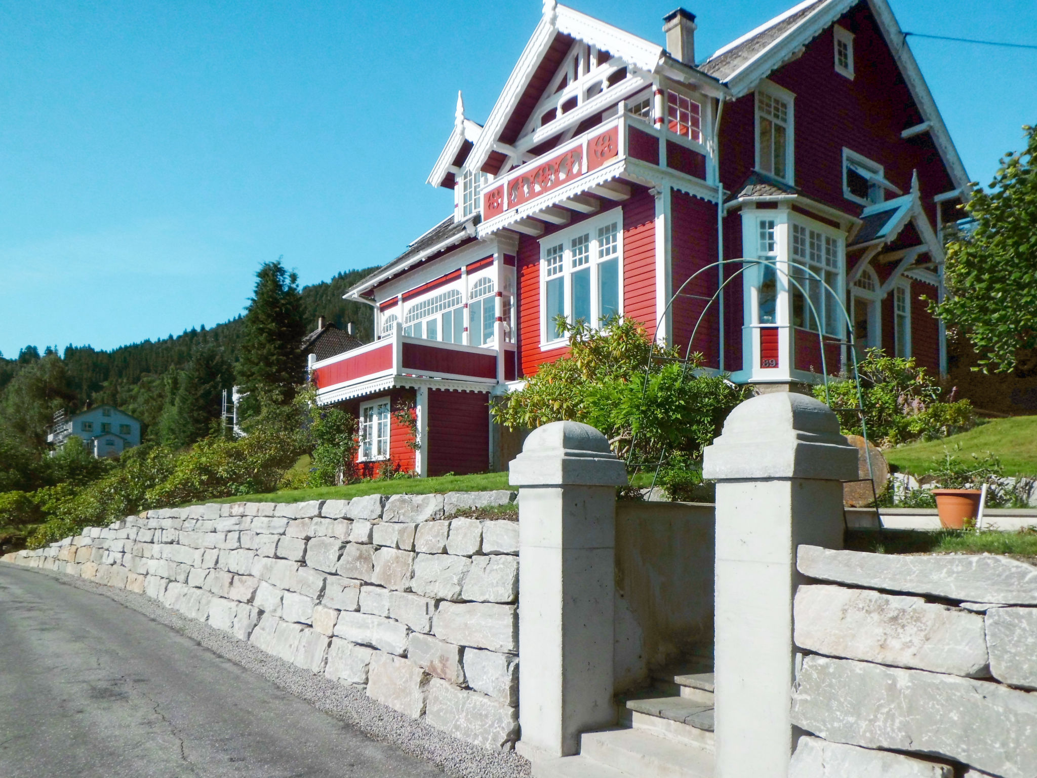 Meget fin tomannsbolig "Villa Lorna". 2 km fra sentrum av Balestrand, 45 km fra sentrum av Høyanger, 48 km fra sentrum av Sogndal, boligområde, 30 m fra sjøen, vei å krysse. Fellesbruk: tomt 2'000 m2, velholdt hage med plen. Badebrygge bading, bord for bearbeiding av fisk. Tilgjengelig: båt (ekstra). Motorbåt (må bestilles). 30 m trapper til hbrukt. Parkering ved hbrukt i 30 m avstand. Supermarked 2 km, bussholdeplass "Skåsheimselva" 350 m, togstasjon "Flåm" 120 km, ferge "Bergen" 209 km, sandstrand "Balestrand" 2 km, strand med gress 40 m, innendørs pool 45 km. Sportsfiske 30 m. Vennligst merk: eieren bor i samme hus.