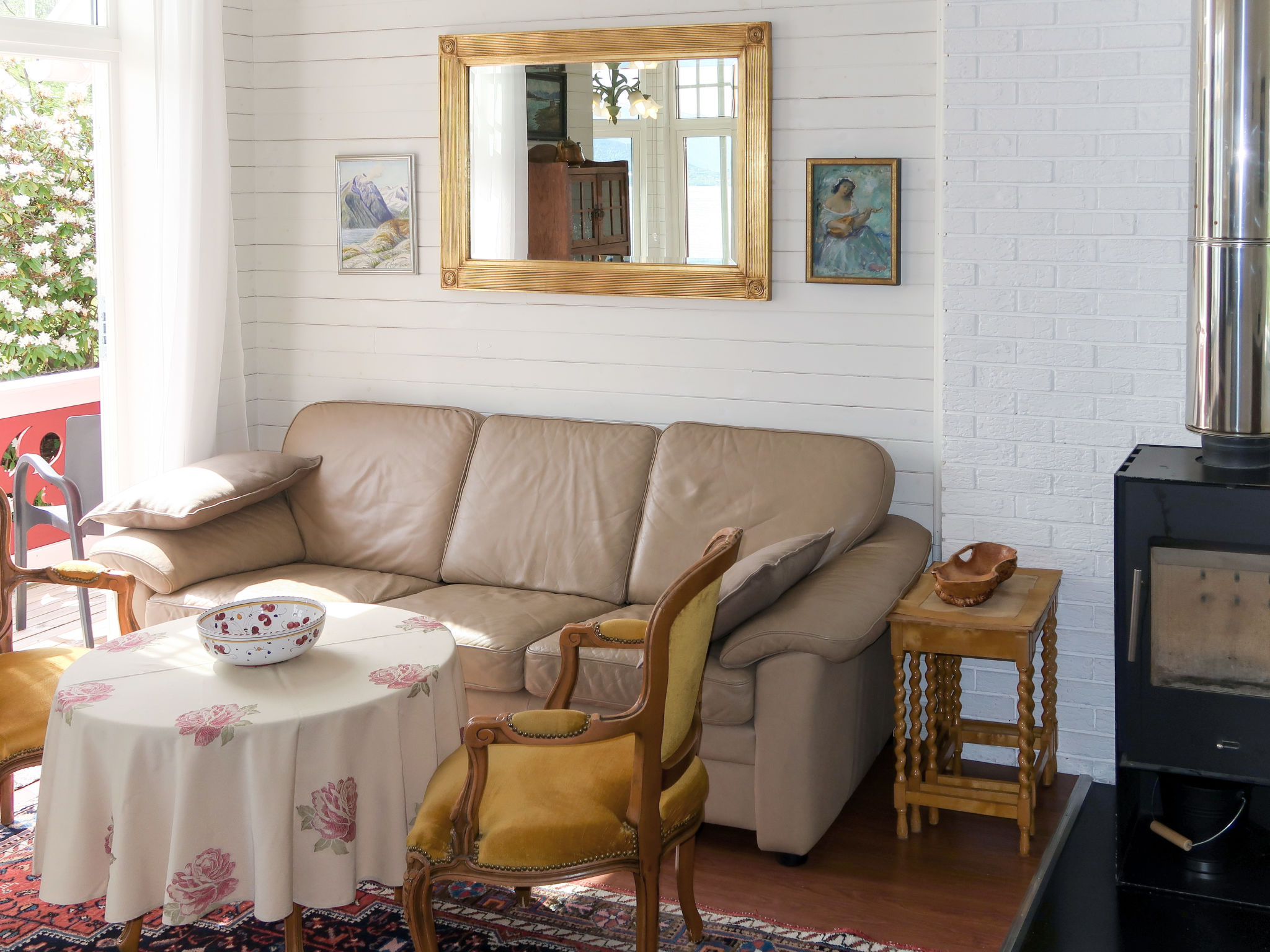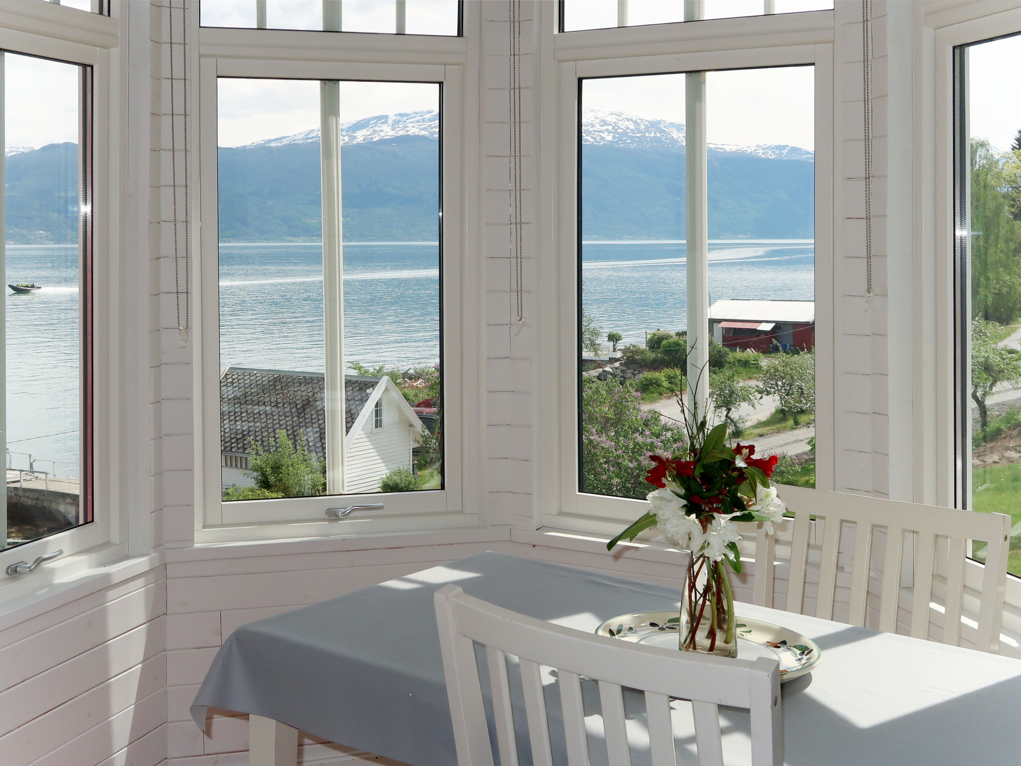 "Villa Lorna", 3 rom leilighet 55 m2. Lys, renovert i 2015, smakfullt og koseligt møbler: stue/spisestue med, vedovn, spisebord, satelit-TV, internasjonale TVkanaler og DVD. 1 rom med, 1 dobbeltseng. 1 rom med 1 seng (90 cm lengde 200 cm). Åpent kjøkken (stekeovn, 4 keramiske kokeplater, brødrister, vannkoker, elektrisk kaffemaskin). Dusj/WC. El-oppvarming. Tregulv. Terrasse. Terrassemøbler, grill. Meget vakker utsikt av havet, fjellene og fjord. Fasiliteter: vaskemaskin. Internett (trådløs LAN [WLAN], gratis). Vennligst merk: røykfritt hus. Røykvarsler, brannslukkningsapparat. kjøleskap og fryser. 924531169