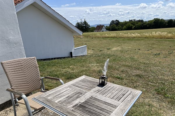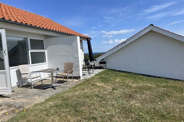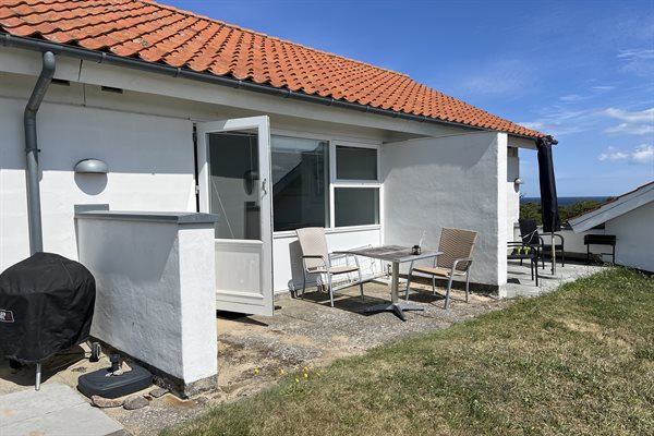 Lys ferielejlighed på 28 kvadratmeter beliggende med den fineste udsigt ud over markerne i det skrånende terræn og ud over Østersøen med Christians Ø i det fjerne. Ferielejligheden er indrettet med stue, mindre køkken og indbydende badeværelse. Køkkenet byder på køleskab, elkogeplader og miniovn. Dobbelt sovesofa i stuen. Større udendørs swimmingpool til fælles benyttelse - opvarmet i perioden 15.6-1.9. Lejligheden er beliggende i Boesvang, hvor der er mange foskellige lejligheder i varierende størrelser. Stedet er populært, da en række seværdigheder er indenfor rækkevidde: Hammershus slotsruin, Opalsøen, Moseløkke Stenbrud, Madseløkke helleristningsfelter er nok Skandinaviens største samling af synlige helleristninger - og endelig ligger Folkemødebyen Allinge i gå afstand.