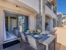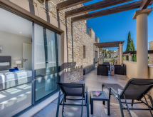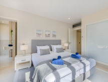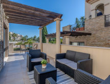 "Pine Hills Diadema", 3-room apartment 114 m2. Modern and cosy furnishings: living/dining room with 1 double sofabed (140 cm, length 190 cm), dining table, TV, international TV channels, flat screen, air conditioning and forced-air heating. Exit to the terrace. 1 room with 1 french bed (200 cm, length 220 cm), bath/WC, double hand-basin, air conditioning and forced-air heating. Exit to the terrace. 1 room with 2 beds (90 cm, length 200 cm), shower/WC, air conditioning and forced-air heating. Exit to the terrace. Kitchen (oven, dishwasher, 4 ceramic glass hob hotplates, toaster, kettle, microwave, freezer, electric coffee machine, Capsules for coffee machine (Nespresso (not inc))). Sep. WC. Large patio. Terrace furniture. Facilities: washing machine, iron, children's high chair, baby cot for up to 2 year olds, hair dryer. Internet (WiFi, free). Parking, garage space n L62. Please note: suitable for families. Non-smokers only. Fire extinguisher. 165776/AL