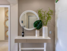 Modern, beautiful, cosy house "Pine Hills", built in 2013, surrounded by trees and fields. 55 apartments in the property. In the resort 2.2 km from the centre of Vilamoura, residential area (villas), 3.7 km from the sea. For shared use: property (fenced), beautiful, well-kept terraced garden plants and trees, swimming pool (depth 135 - 175 cm, seasonal availability: 01.Jan. - 31.Dec.). Unconventional pool shape. WC in the pool area, children's pool, outdoor shower. In the house: fitness room, lift. Communal covered parking space n L23. Shop 4.9 km, grocery 2.2 km, supermarket 2.2 km, shopping centre 4.9 km, restaurant 1.3 km, bar 4.9 km, bakery 2.2 km, café 2.2 km, internet café 4.9 km, pedestrian zone 4.9 km, bus stop 2.2 km, sandy beach "Praia da Falésia" 2.8 km, diving center 2.8 km. Marina 4.9 km, golf course (18 hole) 3 km, surf school 5.6 km, sailing school 5.6 km, tennis 3.3 km, minigolf 2.2 km, riding stable 6.2 km, cycle lane 3.5 km, children's playground 4.6 km, fishing possibilities 4.9 km. Nearby attractions: Vale do Lobo 8.5 km, Casino de Vilamoura 4.7 km, Quinta do Lago 11.2 km, Family Golf Park 2.2 km, Algarve Seafaris 4.9 km, Cerro da Vila Estação Arqueológica 4.2 km. Please note: car recommended. Suitable for families. The owner does not accept any youth groups. Loading and unloading of baggage is possible at the holiday house. Luxury condominium. Pine Hills Condominium is a smoke-free and it is only allowed to smoke after exiting the condominium gates. Parking is subject to availability and free outdoor parking is available near reception.
