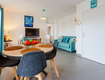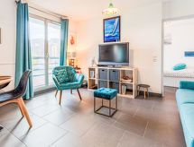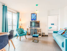 Deauville: Beautiful residence "Blue Bay". 500 m from the sea, 500 m from the beach. In the complex: lift. Shop 1.1 km, grocery 1.1 km, supermarket 2.6 km, bus stop "Marina" 750 m, railway station "Deauville-Trouville" 1.5 km, sandy beach 500 m, indoor swimming pool 1.4 km, thermal baths "Deauville" 1.4 km. Sports harbour 50 m, golf course (18 hole) 9.8 km, tennis 1 km, riding stable 1 km. Nearby attractions: Centre International Deauville - CID 1.2 km, Hippodrome Deauville - La Touques 1.7 km, Mémorial de Caen 55 km, Plages du Débarquement d'Arromanches 88 km. Please note: the keys‘ handover takes place by the agency Interhome in Deauville. Additional accommodations can be booked.