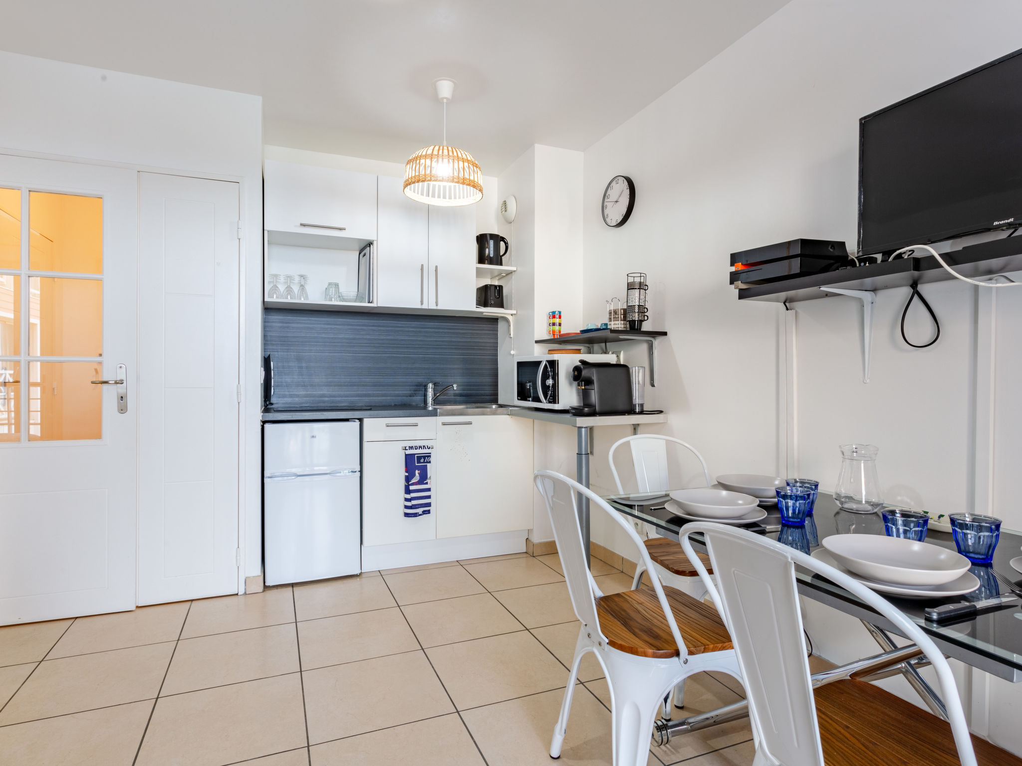 Deauville: Smuk residens "Blue Bay". 500 m fra havet, 500 m fra stranden. I anlægget: elevator. Indkøbsforretning 1.1 km, fødevarebutik 1.1 km, supermarked 2.6 km, busstoppested "Marina" 750 m, banegård "Deauville-Trouville" 1.5 km, sandstrand 500 m, svømmehal 1.4 km, varmtvandsbad "Deauville" 1.4 km. Lystbådhavn 50 m, golfbane (18 hul) 9.8 km, tennis 1 km, ridehal 1 km. Nærliggende attraktioner: Centre International Deauville - CID 1.2 km, Hippodrome Deauville - La Touques 1.7 km, Mémorial de Caen 55 km, Plages du Débarquement d'Arromanches 88 km. Bemærk venligst: nøgleoverrækkelsen finder sted på kontoret Interhome Deauville.