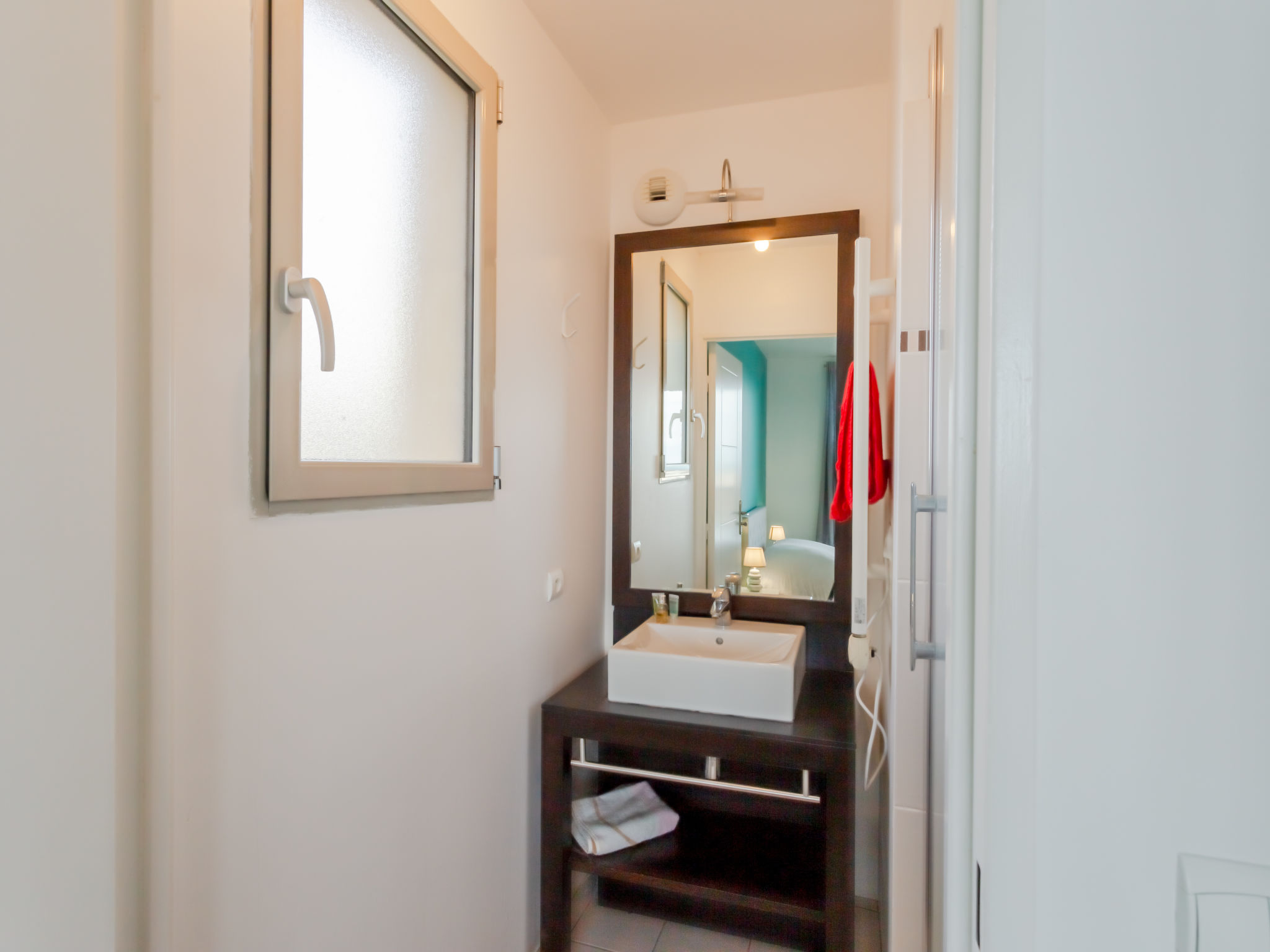 2-værelse-lejlighed 30 m2 i 1. etage. Indgang. Stue/spisestue med 1 dobbelt sovesofa (1 x 140 cm, længde 190 cm), TV (fladskærms TV). Udgang til terrasse, retning nord og retning vest. 1 værelse med 1 fransk seng (1 x 140 cm, længde 190 cm). Åbent køkken (2 kogeplader, opvaskemaskine, Brødrister, kedel, fryser, elektrisk kaffemaskine, kombi-ovn). Brus, særskilt toilet. El-opvarming. Terrasse 15 m2, overdækket, syd vendt og vest vendt. Havemøbler. Meget flotte udsigt over havet. Til benyttelse: vaskemaskine. Internet (trådløs LAN [WLAN], gratis). Parkeringsplads. Bemærk venligst: ikke-ryger lejlighed. 1 husdyr/hund tilladt. Brandalarm. Offer by a private individual according to  Art. 155, IV of CGI.