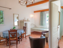 Very beautiful, comfortable resort "A Merula", 3 storeys. 25 apartments in the residence. 1 km from the centre of Calvi, 23 km from the centre of L´Ile Rousse, 92 km from the centre of Bastia, in the residential district, 400 m from the sea, 400 m from the beach. For shared use: property 4'000 m2 (fenced), park with lawn and trees, beautiful garden to relax, swimming pool fenced (11 x 5 m, seasonal availability: 01.Apr. - 31.Oct.). Outdoor shower, terrace. In the complex: reception, WiFi, washing machine (for shared use). Parking on the premises. E-charging station. Supermarket 400 m, bus stop 500 m, railway station 400 m. Please note: car-free holiday complex, car recommended. Not suitable for children under 18 years. The photograph shows a typical example.