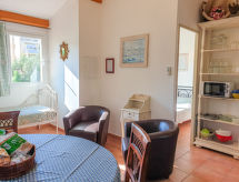 "T2 2 pers 30/32m²", 2-room apartment 30 to 32 m2. Bright, comfortable and tasteful furnishings: living/dining room with dining table and TV can be hired. 1 room with 1 french bed (140 cm, length 200 cm). Open kitchen (2 hot plates, dishwasher, toaster, kettle, microwave, electric coffee machine). Shower/WC. Heating, air-conditioning. Balcony or terrace. Terrace furniture, balcony furniture. Facilities: iron. Please note: not suitable for children under 18 years. Non-smokers only. Smoke alarm. Offer by a commercial proprietor according to  Art. 155, IV, CGI FR9260.610.1