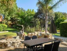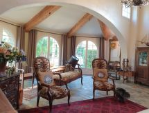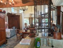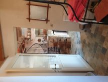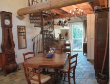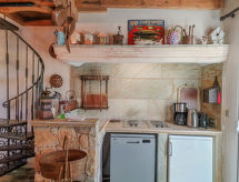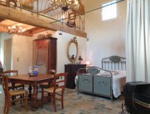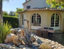 "Maison studio 80m²", 1-room house 80 m2 on 2 levels. Bright, comfortable and tasteful furnishings: living/dining room with dining table and TV can be hired. Exit to the terrace. Kitchenette (2 hot plates, dishwasher, toaster, kettle, microwave, electric coffee machine). 2 showers/WC. Heating, air-conditioning. On the lower ground floor: (steep stair) open gallery with 1 french bed (140 cm, length 190 cm). Terrace. Terrace furniture, deck chairs (2). Facilities: iron. Please note: not suitable for children under 18 years. Non-smokers only. Smoke alarm. Instead of an enclosed bedroom, some sleeping areas are located in an open-plan area (gallery, alcove, etc.). Offer by a commercial proprietor according to  Art. 155, IV, CGI FR9260.610.3