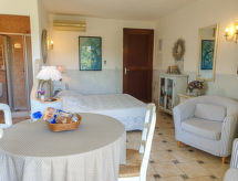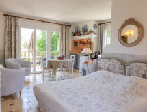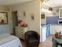 "studio 22-25m², 2 pers", 1-room apartment 22 to 25 m2. Tasteful and cosy furnishings: living/dining room with 1 sleeping facility and dining table. Open kitchen (2 hot plates, toaster, microwave, electric coffee machine). Shower/WC. Electric heating, air-conditioning. Balcony or terrace. Balcony furniture. Please note: not suitable for children under 18 years. Non-smokers only. Smoke alarm. Offer by a commercial proprietor according to  Art. 155, IV, CGI FR9260.611.1