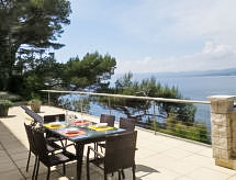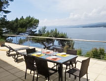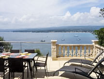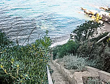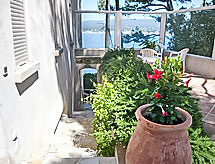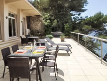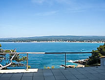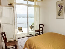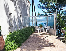 3-room apartment 70 m2. Comfortable and beautiful furnishings: living/dining room with TV (flat screen), DVD and air conditioning. Exit to the terrace. 1 room with 1 french bed (140 cm, length 200 cm), air conditioning. Exit to the terrace. 1 room, window onto the living room with 1 french bed (160 cm, length 200 cm), shower/WC. Open kitchen (dishwasher, 2 ceramic glass hob hotplates, freezer, electric coffee machine, Capsules for coffee machine (Nespresso) extra, combination microwave). Shower/WC. Underfloor heating. Terrace 50 m2, north-west facing position. Terrace furniture, deck chairs. Very beautiful panoramic view of the sea. Facilities: washing machine, dryer, iron, baby cot for up to 2 year olds. Internet (WiFi, free). Please note: non-smokers only. TV only FR. Smoke alarm. Access to the house is via 20 steps down. Access to the cove for swimming is private and is also via steps. 25 m² terrace above the boat garage. Charcoal and wood barbecue prohibited. Pets prohibited. The air conditioning is done by cooling the ground. 83112000214DW