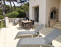 La Madrague 2 km from Saint Cyr Sur Mer: Beautiful 2-family house "Campagne la Source", surrounded by trees. In the resort, 350 m from the sea. Private: terrace (50 m2), garden furniture. In the house: sun terrace. Parking (for 2 cars). Grocery 300 m, restaurant 350 m, bus stop "Le Viguier" 2.2 km, railway station "Saint Cyr les Lecques-La Cadière" 3.2 km, sandy beach 350 m, swimming bay 50 m. Sports harbour 350 m, golf course (18 hole) 4 km. Nearby attractions: Aqualand 3 km, Sentier du Littoral 1 km. Hiking paths: Sainte Baume, Sainte Victoire, Calanques Port-Cros, Porquerolles, Ile verte, Embiez, Figuerolles, Cassis. Please note: the owner lives in the same residence. The grocers shops is situated 300 m away and is opened from 1st May to 30th September.