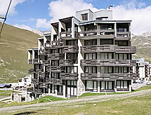 Tignes Val Claret: Residence "Les Hauts du Val Claret(Val Claret)", 4 storeys. 20 m from the skiing area. In the complex: lift, storage room for skis, central heating system. Grocery, supermarket, shopping centre 100 m, restaurant 10 m, bakery 50 m, bus stop 600 m, indoor swimming pool 800 m. Sports centre 800 m, chair lift 10 m, skisport facilities 10 m, slopes 20 m, ski rental 20 m, ski school, ice rink 800 m. Well-known ski regions can easily be reached: Espace Killy. Well-known lakes can easily be reached: le Lac du Chevril 800 m. Please note: ski bus (free of charge). Additional accommodations can be booked.