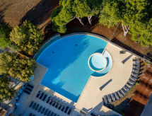Saumane 3 km from L'Isle-sur-la-Sorgue: Large, beautiful, cosy resort "Provence Country Club". 131 apartments in the residence. In the hamlet Saumane 3 km from the centre of L'Isle-sur-la-Sorgue, 18 km from the centre of Carpentras, 32 km from the centre of Avignon, in the countryside, on the golf course. For shared use: property with lawn and trees, natural garden, meadow, swimming pool (20 x 10 m, seasonal availability: 16.May. - 10.Oct.). Unconventional pool shape. Children's pool, tennis, terrace. In the complex: reception, WiFi, fitness room, washing machine, tumble dryer (for shared use, extra). Bread roll service. Parking on the premises. Supermarket 5 km. Golf course (18 hole) 50 m. Please note: the photograph shows a typical example. The holiday properties may differ in living space, floorplan, equipment and furnishing. Wi-fi only at the reception.