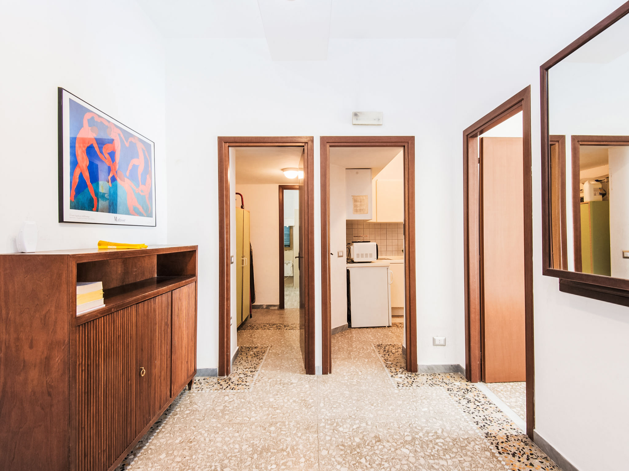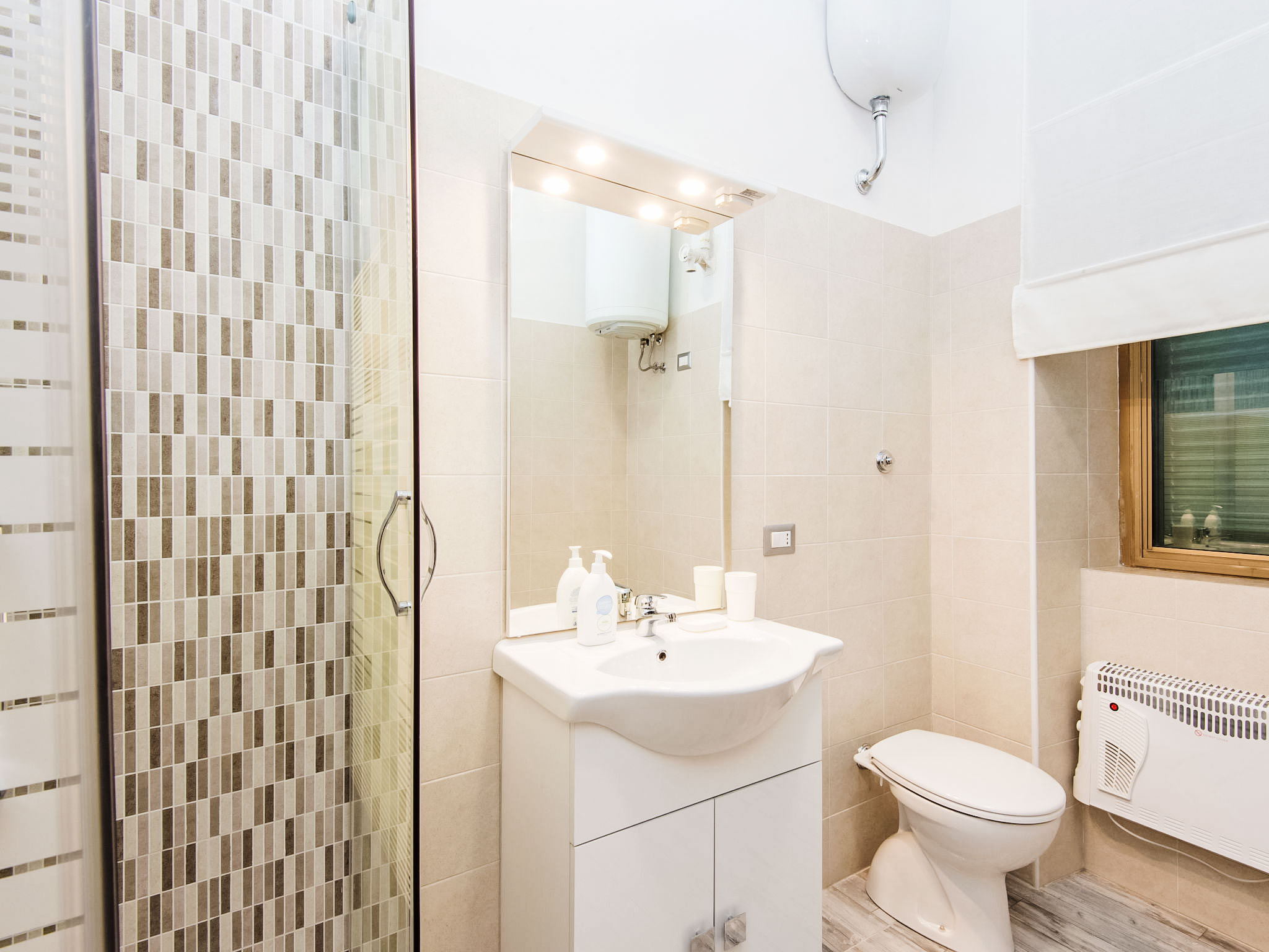 3 rom leilighet 90 m2, i forhøyet bunnetasje. Romlig, delvis renovert i 2020, praktiskt møbler: stor inngang. Stue/spisestue med, 1 dobbel sovesoffa, digital TV og flatskjerms TV. 1 dobblet rom. 1 rom med 2 senger og 1 sovesoffa. Kjøkkenkrok (stekeovn, oppvaskmaskin, 4 induksjonskomfyr, mikrobølgeovn, frys). 2 dusjer/bidéer/WC. El-oppvarming, airconditioning. Fasiliteter: vaskemaskin, safe, strykejern, hårføner. Internett (trådløs LAN [WLAN], gratis). Vennligst merk: røykfri bolig. Max 1 lite kjæledyr / liten hund tillatt. IT058091C2SJRK8PR8