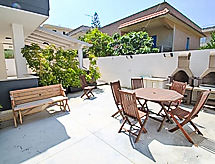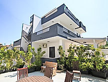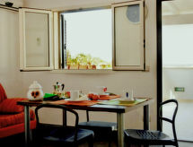 2-room apartment 40 m2 on 2nd floor. Practical and comfortable furnishings: living/sleeping room with 1 double sofabed and TV (flat screen), air conditioning and forced-air heating. Exit to the terrace. 1 double bedroom. Kitchenette (4 hot plates, oven) with dining table. Shower/bidet/WC. Heating. Heating available only from 01.12. to 31.03, Heating not available in all rooms. Terrace 15 m2, roofed. Terrace furniture. Partial distant view of the sea. Facilities: washing machine, iron, hair dryer. Internet (WiFi, free). Please note: maximum 1 pet/ dog allowed. Smoke alarm, fire extinguisher, no lift. IT088011B42SAZEDXA