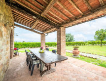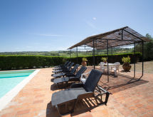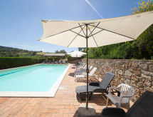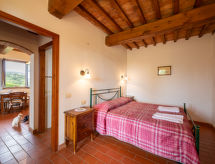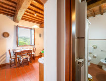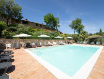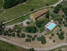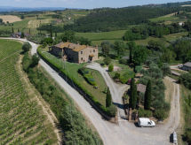 Montaione 19 km from San Gimignano: Agriturismo Casa Bacceli is divided into 7 apartments, one of which is occupied by the owner. The agroturismo is situated on a hill approx. 2 km from the centre of Montaione, in an oasis of peace and tranquility. An ideal place for relaxing holiday walking in the open air and in the Tuscan countryside - a perfect base for visiting the art cities in the region such as Volterra approx. 20 km, Siena and Lucca approx. 50 km, the Etruscan beaches approx. 60 km. Large working farm "Baccelli". 7 apartments in the property. 2 km from the centre of Montaione, 15 km from the centre of San Gimignano, 50 km from the centre of Firenze, in a secluded, quiet, sunny position on top of a hill. For shared use: garden (fenced), swimming pool (15 x 9 m, depth 120 - 200 cm, seasonal availability: 27.Apr. - 28.Sep.). Garden furniture, barbecue. In the complex: WiFi, central heating system, heating to be paid on the spot, heating available only from 01.Nov. - 07.Apr.. Motor access to the house (800 m via unmade road). Parking at the house. Shop 2 km, grocery 2 km, supermarket 2 km, bus stop 2 km, railway station "Castelfiornetino" 12 km. Golf course (18 hole) 17 km, tennis 5 km. Nearby attractions: Certaldo 19 km, San Miniato 30 km, San Casciano in Val di Pesa 40 km, Colle Val d'Elsa 40 km. WI-FI in the pool area and garden.