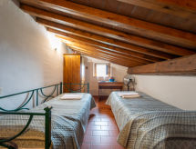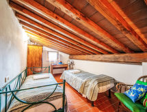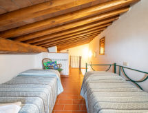 "Cimabue", 3-room apartment 45 m2 on 2 levels, on the ground floor. Comfortable and cosy furnishings: living/dining room with satellite TV. 1 double bedroom. Exit to the garden. Kitchen (4 hot plates, oven, dishwasher, toaster, kettle, freezer). Shower/bidet/WC. Upper floor: 1 small room with sloping ceilings with 2 beds. Facilities: children's high chair, hair dryer. Please note: maximum 1 pet/ dog allowed. Smoke alarm, fire extinguisher. Private outdoor space equipped with garden furniture. IT048015B557NN3MER