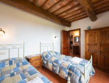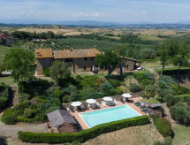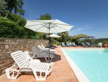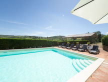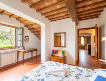 Montaione 19 km from San Gimignano: Agriturismo Casa Bacceli is divided into 7 apartments, one of which is occupied by the owner. The agroturismo is situated on a hill approx. 2 km from the centre of Montaione, in an oasis of peace and tranquility. An ideal place for relaxing holiday walking in the open air and in the Tuscan countryside - a perfect base for visiting the art cities in the region such as Volterra approx. 20 km, Siena and Lucca approx. 50 km, the Etruscan beaches approx. 60 km. Large working farm "Baccelli". 7 apartments in the property. 2 km from the centre of Montaione, 15 km from the centre of San Gimignano, 50 km from the centre of Firenze, in a secluded, quiet, sunny position on top of a hill. For shared use: garden (fenced), swimming pool (15 x 9 m, depth 120 - 200 cm, seasonal availability: 27.Apr. - 28.Sep.). Garden furniture, barbecue. In the complex: WiFi, central heating system, heating to be paid on the spot, heating available only from 01.Nov. - 07.Apr.. Motor access to the house (800 m via unmade road). Parking at the house. Shop 2 km, grocery 2 km, supermarket 2 km, bus stop 2 km, railway station "Castelfiornetino" 12 km. Golf course (18 hole) 17 km, tennis 5 km. Nearby attractions: Certaldo 19 km, San Miniato 30 km, San Casciano in Val di Pesa 40 km, Colle Val d'Elsa 40 km. WI-FI in the pool area and garden.