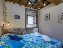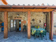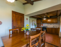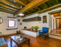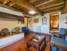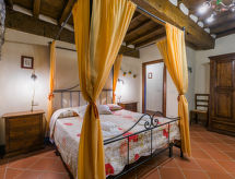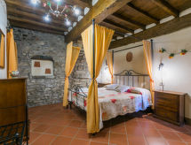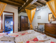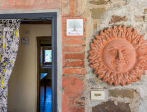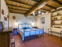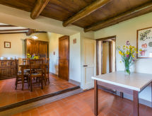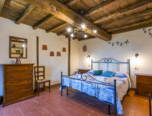 "Quercia", 5-room apartment 93 m2, on the ground floor. Rustic and stylish furnishings: living/dining room with dining table and satellite TV. 2 double bedrooms. 1 room with 1 french bed (1 x 140 cm). Kitchen-/living room (4 hot plates, oven, dishwasher, freezer) with dining table. 2 showers/bidet/WC. Gas heating. Patio. Terrace furniture, barbecue. Beautiful view of the countryside. Facilities: Internet (WiFi, free). Parking. Please note: non-smokers only. Outside space, fenced, of approx. 40m². IT048035C2W3K6Q5HJ