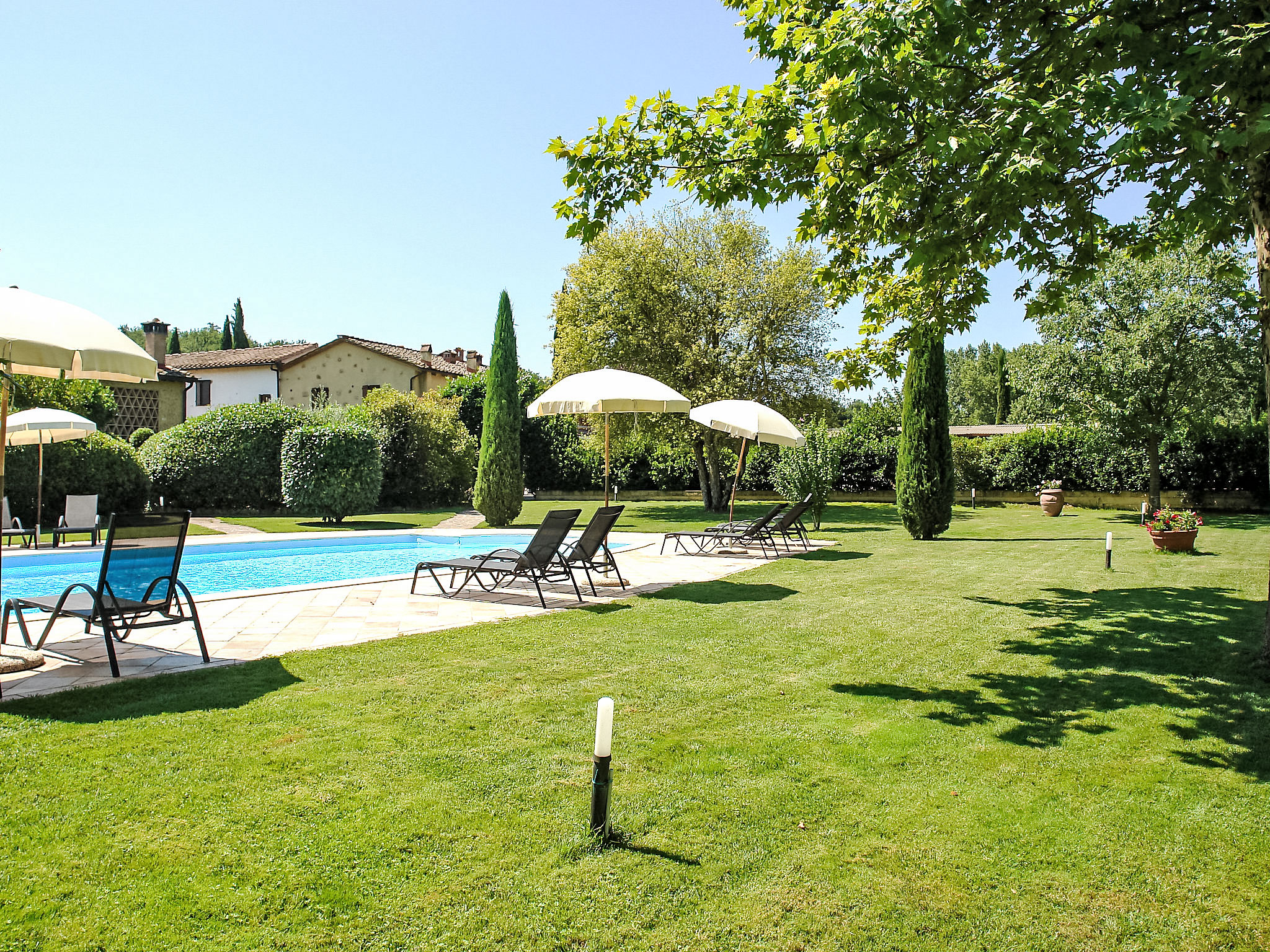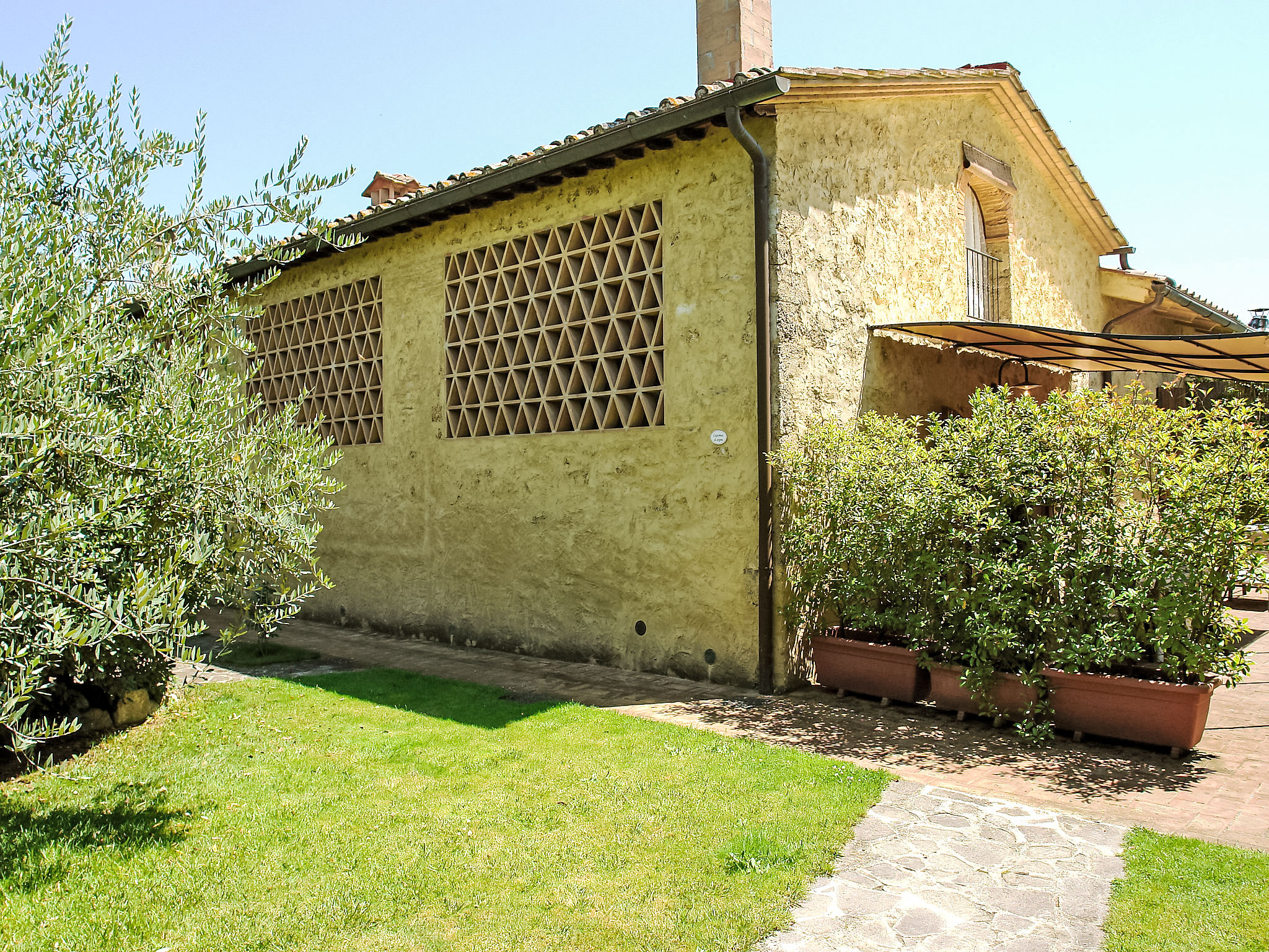 Old farmhouse, renovated, with lovely view on the hills of Chianti Classico. Surrounded by vineyards. In the property there is the stone house which consists of 2 parts and the owner's farmhouse.Rustic tuscan furniture. Automatic gate. Swimming-towels available for the clients (extra). Hus på gård "La Mirandola", renovert. 10 km fra sentrum av Castellina in Chianti, 15 km fra sentrum av Siena, 45 km fra sentrum av Firenze, i en roligt posisjon, i det grønne. Fellesbruk: tomt (inngjerdet), stor, vakker, velholdt hage med plen og planter, 1 badebasseng (14 x 7 m, dybde 140- 200 cm dyp, Sesongåpent: 24.Apr. - 16.Okt.). Bordtennis, terrasse, hagemøbler. Privat: terrasse, hagemøbler, grill. I huset: frokostrom, internetilkobbling, sentralvarme, vaskemaskin (for felles bruk ekstra), oppvarming betales lokalt, oppvarming kun tilgjengelig fra 01.Nov. - 15.Apr. (ekstra). Romrengjøring på forespørsel (ekstra). Frokost muligt. Overdekket, parkering ved hbrukt. Butikk 2 km, bussholdeplass 2 km, togstasjon "Castellina Scalo" 2 km. Golfbane 15 km, tennis 3 km, rideskole 2 km. Vennligst merk: eieren bor på same tomt.