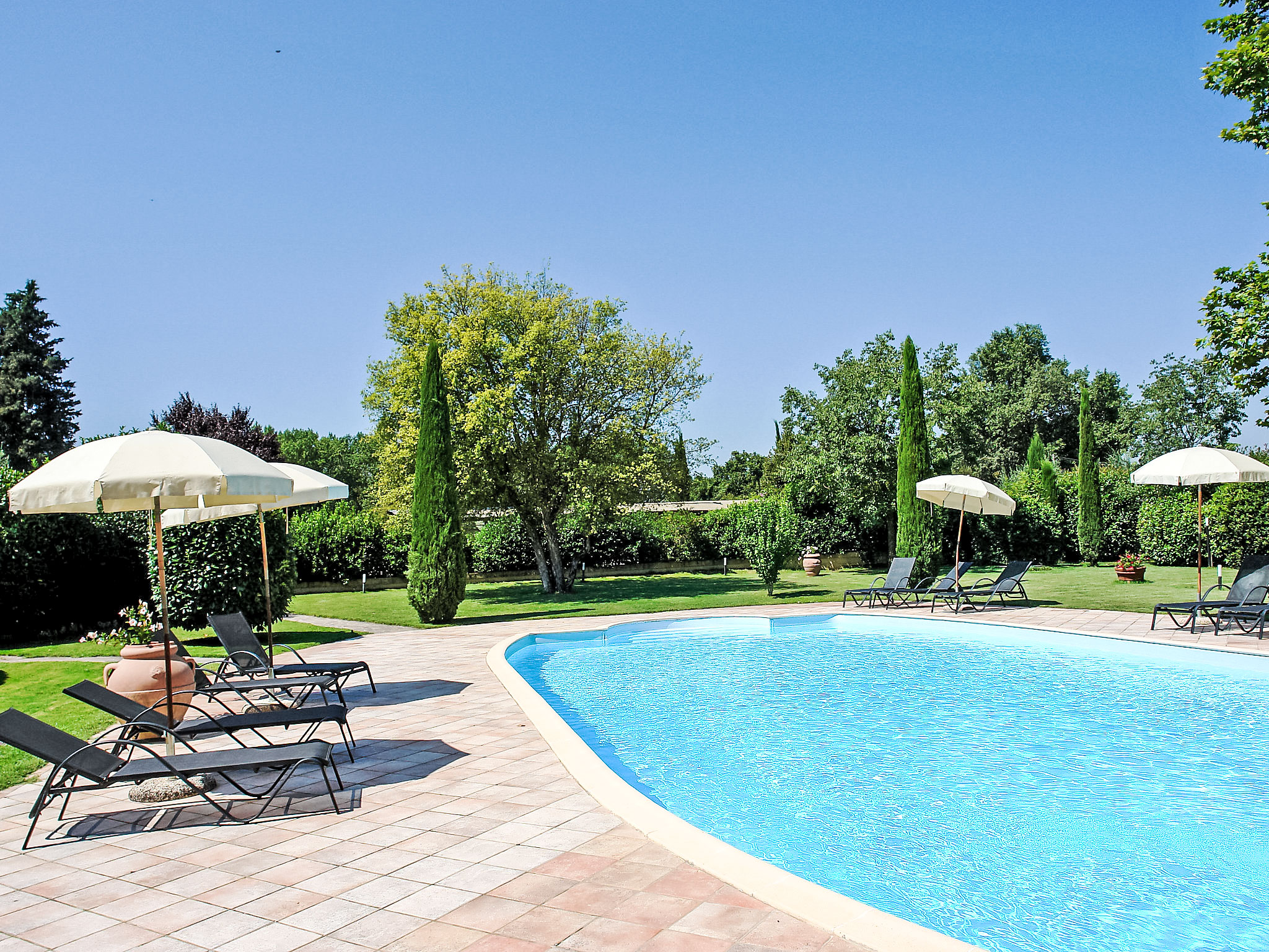 13. . Dersom hage/terrassemøbler er beskrevet betyr ikke dette at det nødvendigvis er en hagestol tilgjengelig for hver av de tilstedeværende. Dette gjelder også for solsenger som det ofte er begrenset tilgang på. Puter til solsenger er av hygieniske grunner ikke tilgjengelige for en del eiendommers vedkommende. Hagesofaer og solskjermer er også kun tilgjengelige dersom det er eksplisitt nevnt i beskrivelsen av objektet.
