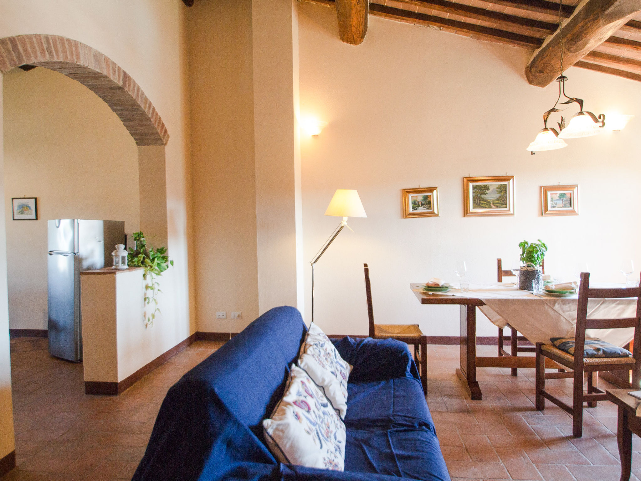 Former, recently renovated stone farmhouse, located within a large farm residence. Now the main building is divided into 3 large apartments which have still retained their original, special, architectural style with terracotta floors and wooden ceilings. All apartments are on the first floor and on one side, there is view of the countryside, on the other side, there is a view of the paved outside area and also the swimming pool. Guests can walk in the grounds, cycle and fish in one of the two large lakes or just relax in the garden. Familievennlig, enkel, komfortabel hus på gård fra det 18th århundre, renovert, omgitt av trær og jorder. 9 km fra sentrum av Colle Val d'Elsa, 3 km fra sentrum av Casole d'Elsa, 20 km fra sentrum av San Gimignano, i en roligt posisjon ved en høyde, i det grønne. Fellesbruk: tomt, 1 badebasseng (7 x 15 m, dybde 120- 160 cm dyp, Sesongåpent: 03.Mai. - 03.Okt. bassengets åpningstider: 09:00-19:00) med innbygdetrapper. Utendørs dusj, grill. I anlegget: resepsjon, restaurant, sentralvarme, vaskemaskin (for felles bruk ekstra), oppvarming betales lokalt, oppvarming kun tilgjengelig fra 01.Nov. - 07.Apr.. Romrengjøring på forespørsel (ekstra). Parkering ved hbrukt på tomten. Butikk 3 km, daglivarehandel 3 km, supermarked 9 km, restaurant 3 km, bussholdeplass 2.5 km, togstasjon "Poggibonsi" 20 km, sandstrand "Follonica" 80 km, termalbad "Rapolano Terme" 60 km. Tennis 15 km, rideskole 15 km. Attraksjoner i nærheten: Casole d'Elsa 3 km, Monteriggioni 16 km, Volterra, Castellina in Chianti 26 km, San Donato in poggio 30 km, Radda in Chianti 37 km, Firenze 65 km. Vennligst merk: bil anbefales. Egnet for arrangementer. Salg av lokale gårdsprodukter. Det er flere lignende leiligheter i samme hus.