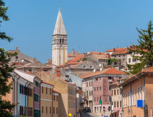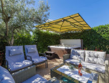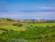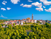 Beautiful single-family house "Nena". 500 m from the centre of Buje, in a quiet, sunny, elevated position, 10 km from the sea, 10 km from the beach, in a cul-de-sac. Private: garden 40 m2 (fenced) with wildlife garden and flowers, swimming pool (above ground) heated (2 x 2 m, depth 70 cm, seasonal availability: 01.Apr. - 30.Oct.). Outdoor shower, garden furniture, barbecue. In the house: internet access, washing machine. Parking at the house on the premises. Grocery 200 m, supermarket, restaurant, café 500 m, bus stop 1 km, pebble beach 10 km, public bathing area 10 km. Golf course (18 hole) 18 km, tennis 1 km, sports centre 10 km, walking paths from the house, cycle lane 500 m. Swimming pool for private use is a hot tub for 3 persons. Well-known bicycle route “Parenzana” 500 m from the house.