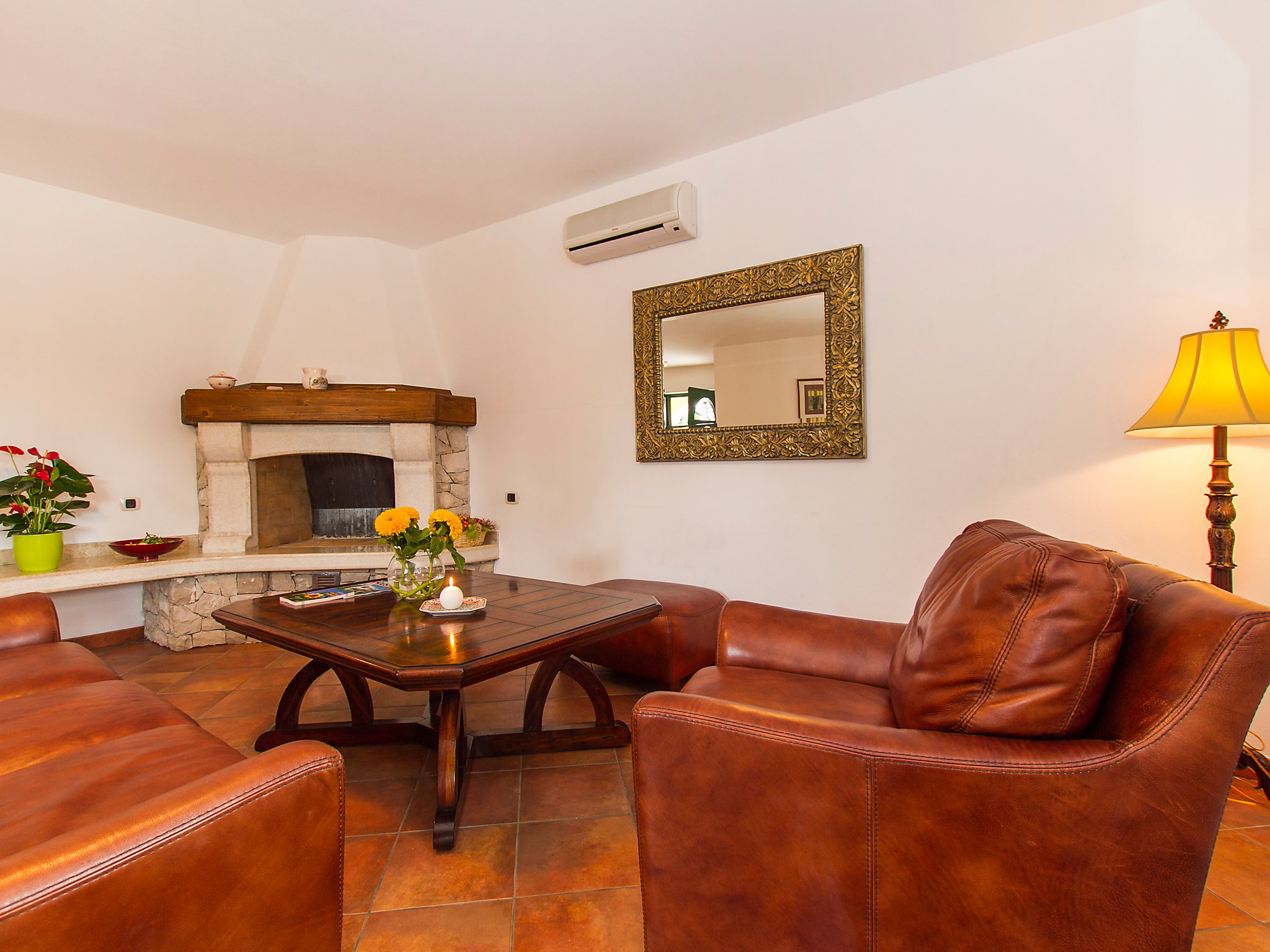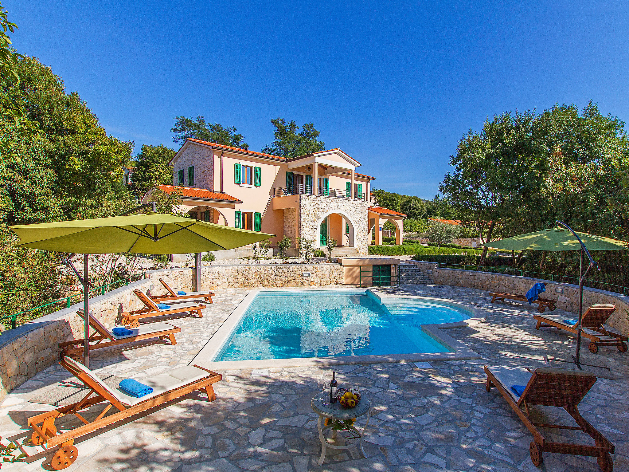 Sveti Lovreč Labinski 20 km fra Rabac: For felles bruk: 2 svømmebassenger (13 x 4 m, 8,5 x 4,5 m). Fin, komfortabel villa "Maggie", med 2 etasjer. I det lille tettstedet Vlakovo 15 km fra sentrum av Labin, i en roligt, solrikt, høyt posisjon, 4 km fra sjøen, 4 km fra stranden, i det grønne. Fellesbruk: tomt (inngjerdet), 1 badebasseng firkantet (13 x 4 m, dybde 140 cm dyp, Sesongåpent: 06.Mai. - 16.Sep.) med innbygdetrapper. Utendørs dusj, bassenghus, hagemøbler, grill. Privat: hage m2 600 ha med plen og trær. I huset: sentralvarme, airconditioning. Tilgang med bil hele veien (100 m naturvei, rampe). Parkering ved hbrukt på tomten. Butikk 4 km, restaurant 4 km, bussholdeplass 14.8 km, småstenstrand 4 km, strand ved klipper 4 km.