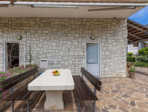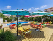 Apartment house "Nika". In the district of Punta 2 km from the centre of Umag, in a sunny position, 300 m from the sea, 300 m from the beach. For shared use: property 1'500 m2 (fenced), well-kept garden, swimming pool (8 x 4 m, depth 135 cm, seasonal availability: 25.Apr. - 19.Sep.). Outdoor shower, hot tub, barbecue. In the house: internet access, bicycles available (extra). Available: boat (extra). Parking. E-charging station. Shop, restaurant 500 m, bus stop 1.9 km, pebble beach 300 m. Tennis 200 m, children's playground 20 m. For shared use: hot tub available from 15.05. - 15.09. Video surveillance of the driveway and parking.