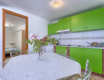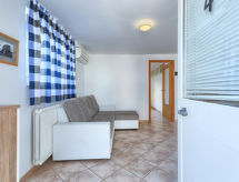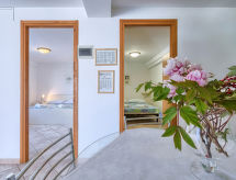 3-room apartment 50 m2, on the ground floor. Living/dining room with 1 sofabed and satellite TV (flat screen), air conditioning. Exit to the terrace. 1 room with 1 double bed (2 x 80 cm, length 200 cm). 1 room, without window with 1 double bed (2 x 80 cm, length 200 cm). Open kitchen (4 hot plates). Shower/WC. Terrace 20 m2. Terrace furniture. Facilities: Internet (WiFi, free).