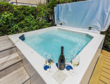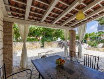 Apartment house "Nika". In the district of Punta 2 km from the centre of Umag, in a sunny position, 300 m from the sea, 300 m from the beach. For shared use: property 1'500 m2 (fenced), well-kept garden, swimming pool (8 x 4 m, depth 135 cm, seasonal availability: 25.Apr. - 19.Sep.). Outdoor shower, hot tub, barbecue. In the house: internet access, bicycles available (extra). Available: boat (extra). Parking. E-charging station. Shop, restaurant 500 m, bus stop 1.9 km, pebble beach 300 m. Tennis 200 m, children's playground 20 m. For shared use: hot tub available from 15.05. - 15.09. Video surveillance of the driveway and parking.