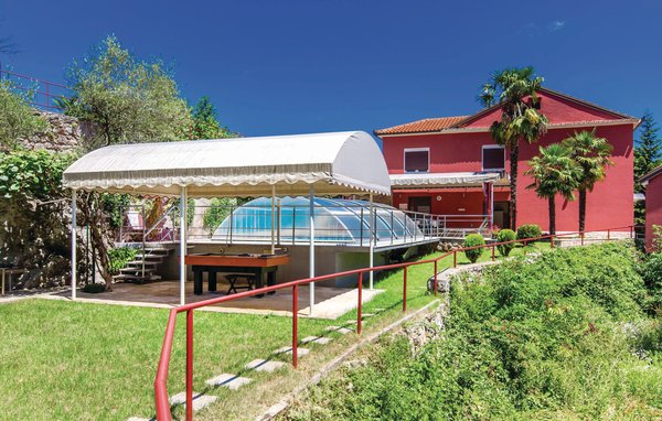 I et roligt område i Pobri ligger dette feriehus med to etager. Huset er moderne og komfortabelt indrettet og byder på de bedste betingelser til et godt, afslappende ophold. Omgivelserne er ideelle til jer, der søger fred og ro i ferien - stedet er en sand oase langt fra hverdagens stress og jag! Etagerne i huset er forbundet af en indvendig trappe. Grunden er indhegnet og har en have med terrasse og grill. Derudover har I en udendørs opvarmet overdækket pool. Herfra kan I også på kun 10 minutter i bil komme til de lækre strande i Opatija, Icici og Volosko. Tag også ind til Opatija, som er perlen på rivieraen med mulighed for indkøb af dagligvarer, shopping og at gå ud at spise. Nyd de lækre lokale specialiteter, og slap af på en gåtur gennem byen.