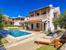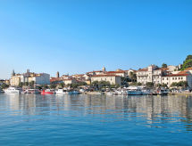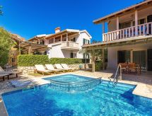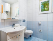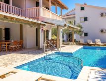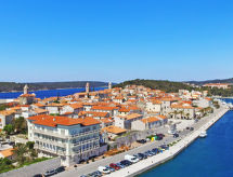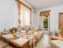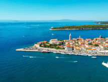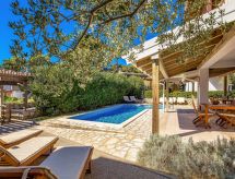 Beautiful apartment block. In the district of Palit 2 km from the centre of Rab, outside the resort, in a sunny, elevated position, 100 m from the sea, 250 m from the beach. For shared use: property (fenced), well-kept garden with lawn, swimming pool angular heated (9 x 4 m, depth 120 - 160 cm, seasonal availability: 13.May. - 30.Sep.) with internal staircase. Children's pool, outdoor shower, garden furniture, barbecue. In the house: internet access. Roofed, parking at the house. Shop 900 m, restaurant 1 km, bus stop 1.9 km, sandy beach, pebble beach 250 m, public bathing area 900 m. Tennis 2.5 km. Please note: the photograph shows a typical example. Additional accommodations can be booked. Property ref. HR3700.301, 304 is situated on the same property. The apartment house "Mihaela" is situated on the same grounds (1600 m2) with apartment houses "Ivan" and "Pavica", with swimming pool for shared use, with counterflow. One part of the pool is a paddling pool, depth 30 - 60cm. Deck chairs at disposal. The old town of Rab can be reached by a coastal promenade (20 minutes walk).