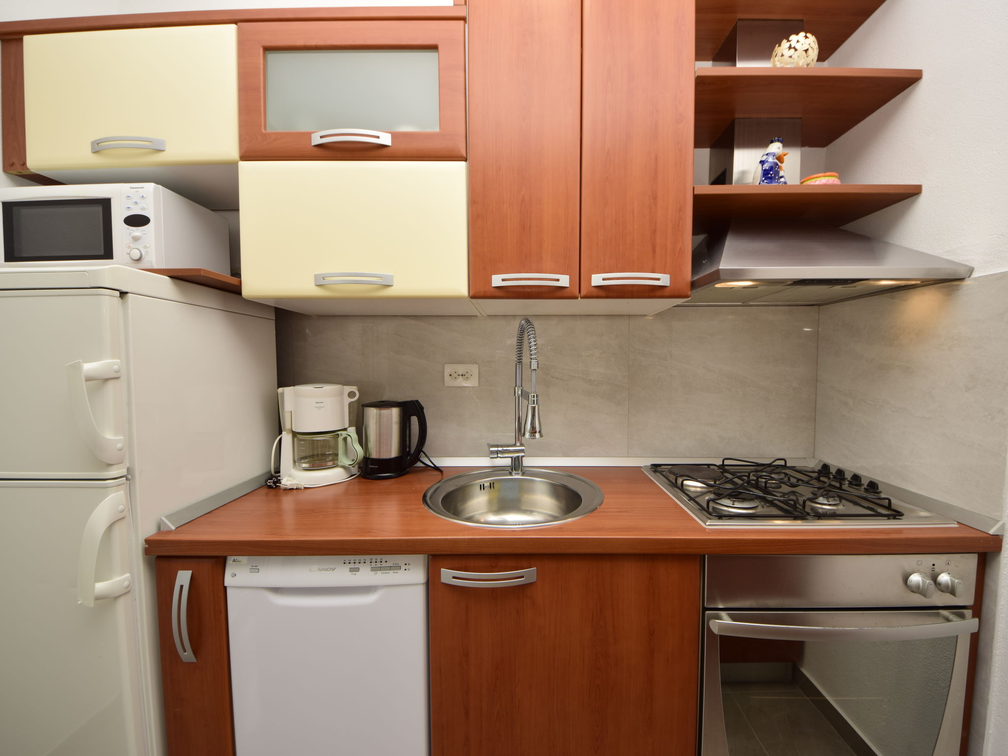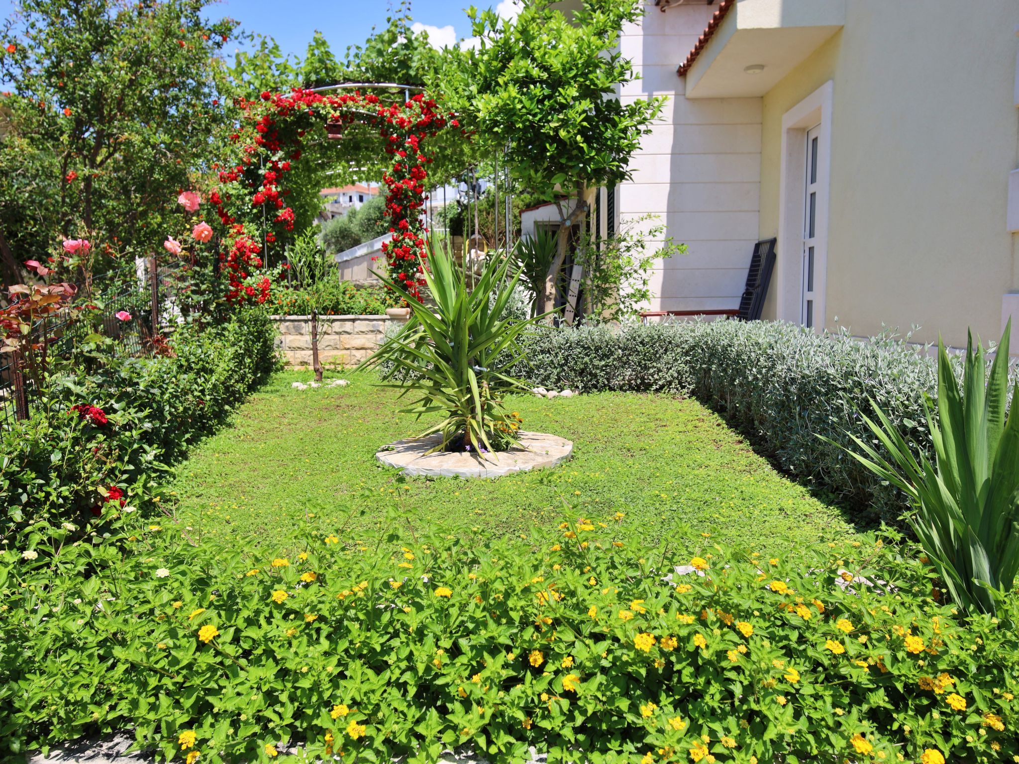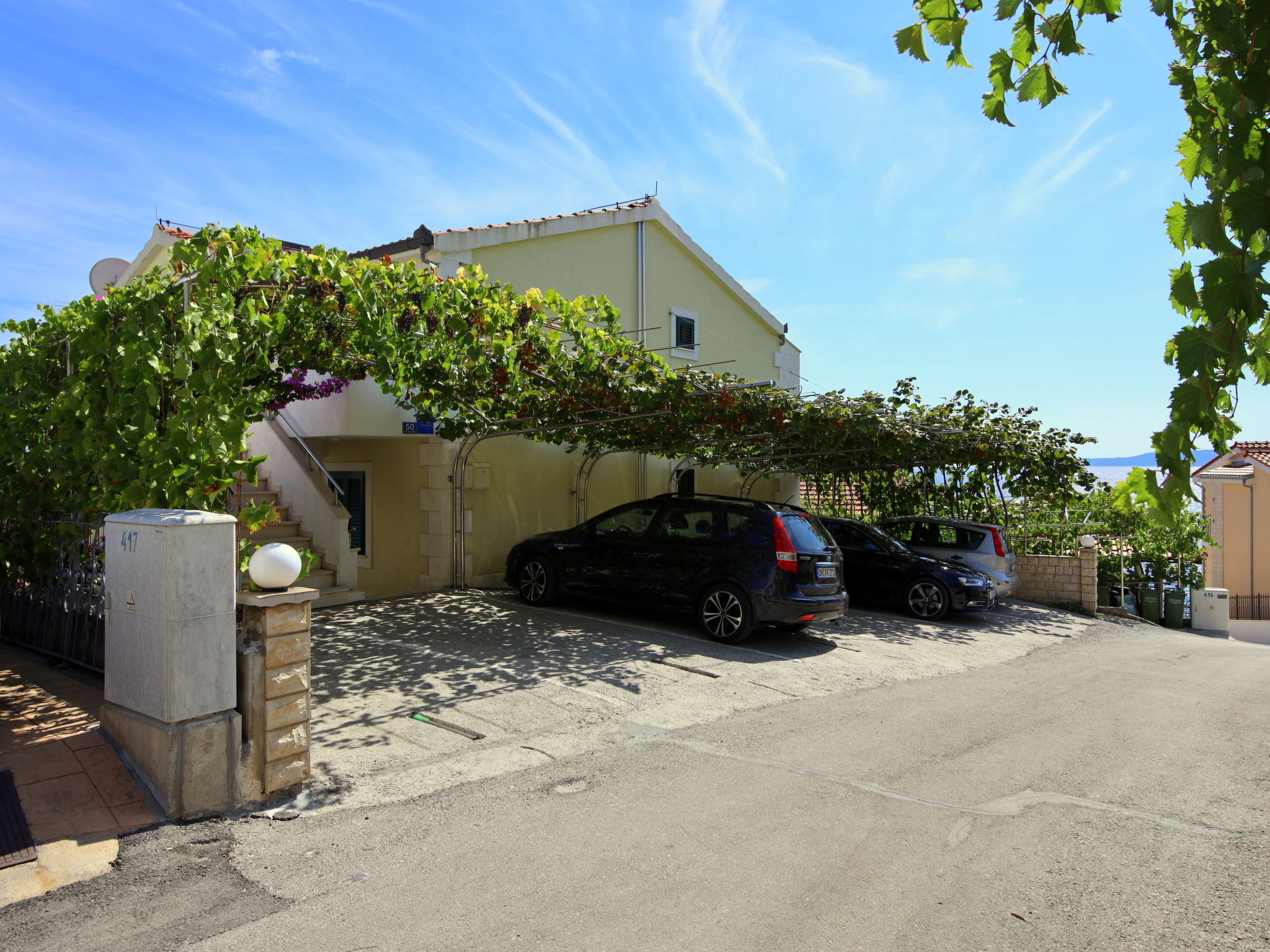 Okrug Gornji (Čiovo), 6 km fra Trogir: Fin flermannsbolig "Villa Andjelka". 1 km fra sentrum av Okrug Gornji, i en roligt, solrikt, høyt posisjon, 50 m fra sjøen, 50 m fra stranden. Fellesbruk: tomt, 1 badebasseng oppvarmt (38 m2, dybde 130- 160 cm dyp, Sesongåpent: 25.Apr. - 03.Okt.) med innbygdetrapper. WC ved bassenget, utendørs dusj, bassenghus med kjøleskap, terrasse, hagemøbler, grill. I huset: internetilkobbling, badstu (ekstra). Vaskemaskin, tørketrommel. Håndkleskift 2 ganger i uken. Parkering ved hbrukt på tomten. El-ladestasjon. Butikk 200 m, restaurant 1 km, café 1 km, bussholdeplass 1.7 km, småstenstrand 500 m, strand ved klipper 50 m. Vennligst merk: Det er flere lignende leiligheter i samme hus. Svømmebasseng med motstrømsmaskin og hydromassasje.