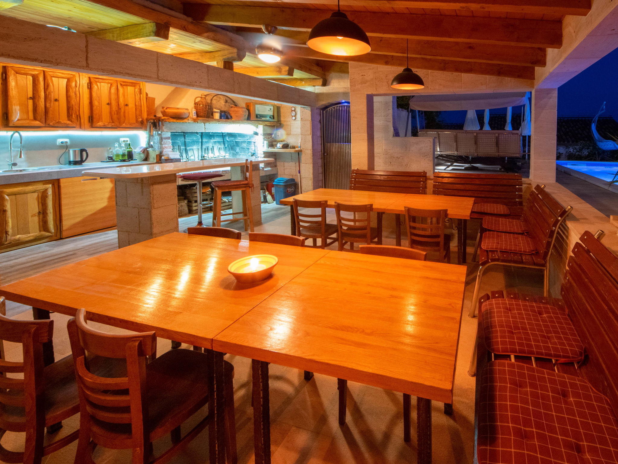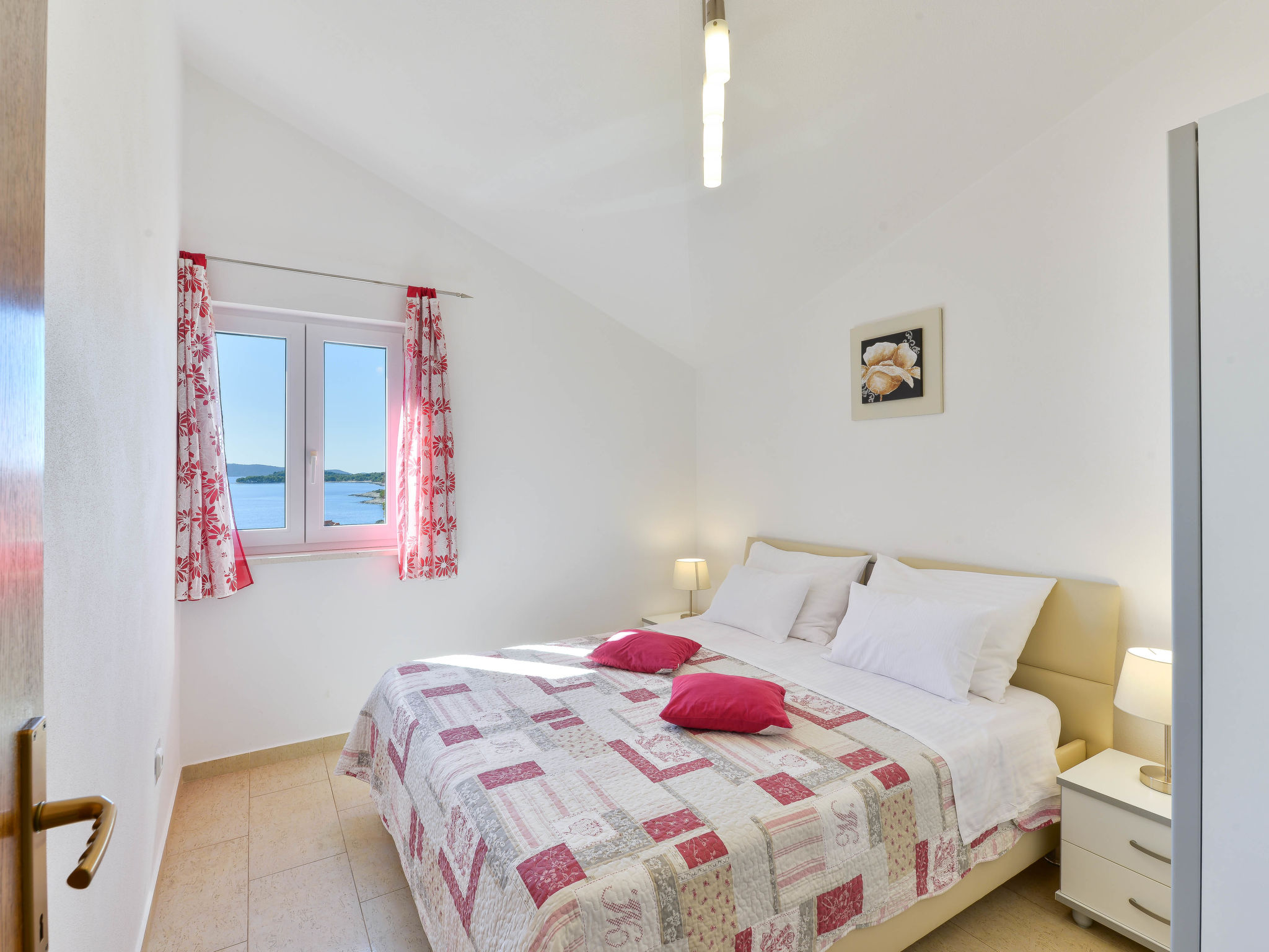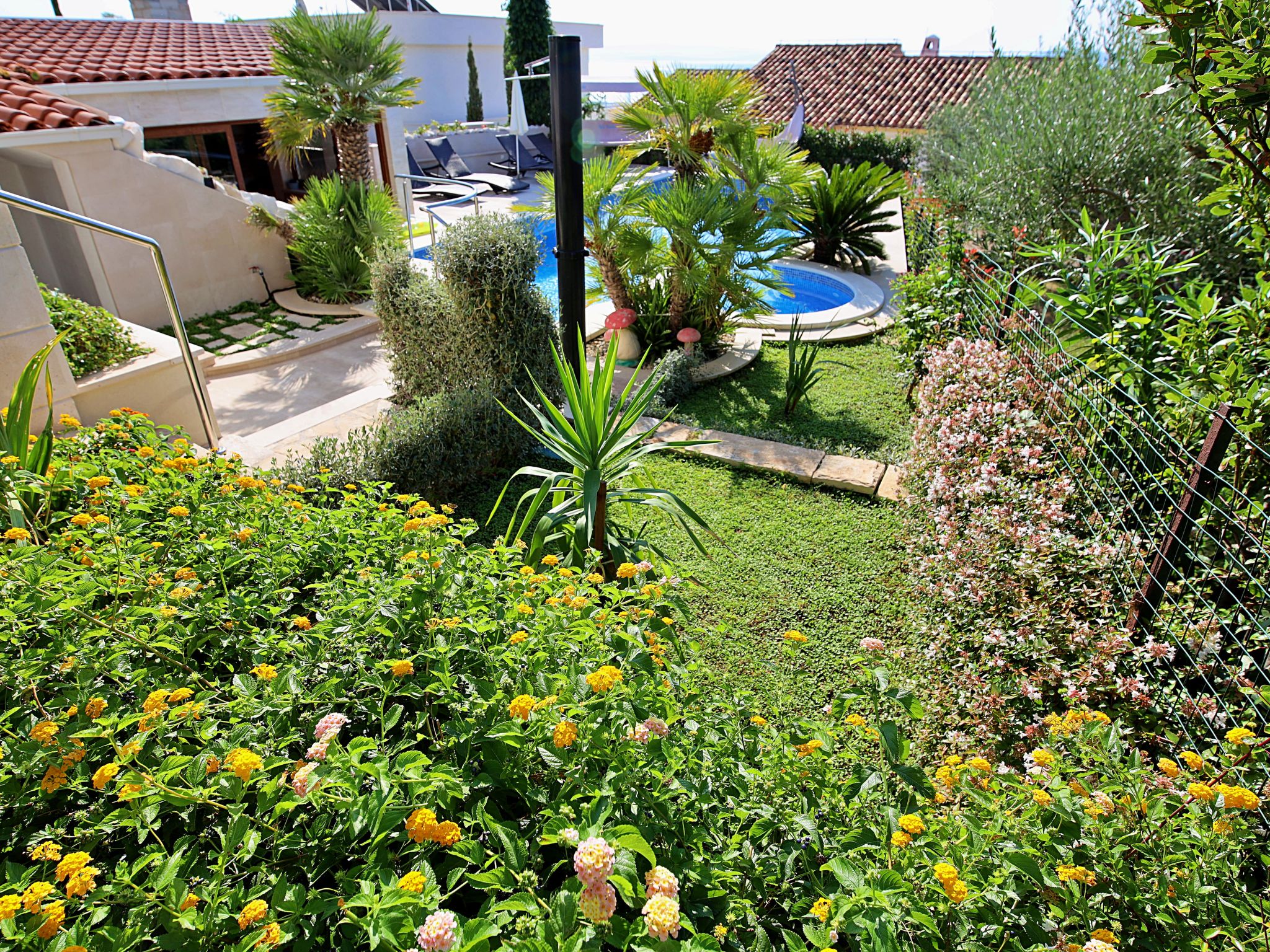 Okrug Gornji (Čiovo), 6 km fra Trogir: Fin flermannsbolig "Villa Andjelka". 1 km fra sentrum av Okrug Gornji, i en roligt, solrikt, høyt posisjon, 50 m fra sjøen, 50 m fra stranden. Fellesbruk: tomt, 1 badebasseng oppvarmt (38 m2, dybde 130- 160 cm dyp, Sesongåpent: 25.Apr. - 03.Okt.) med innbygdetrapper. WC ved bassenget, utendørs dusj, bassenghus med kjøleskap, terrasse, hagemøbler, grill. I huset: internetilkobbling, badstu (ekstra). Vaskemaskin, tørketrommel. Håndkleskift 2 ganger i uken. Parkering ved hbrukt på tomten. El-ladestasjon. Butikk 200 m, restaurant 1 km, café 1 km, bussholdeplass 1.7 km, småstenstrand 500 m, strand ved klipper 50 m. Vennligst merk: Det er flere lignende leiligheter i samme hus. Svømmebasseng med motstrømsmaskin og hydromassasje.