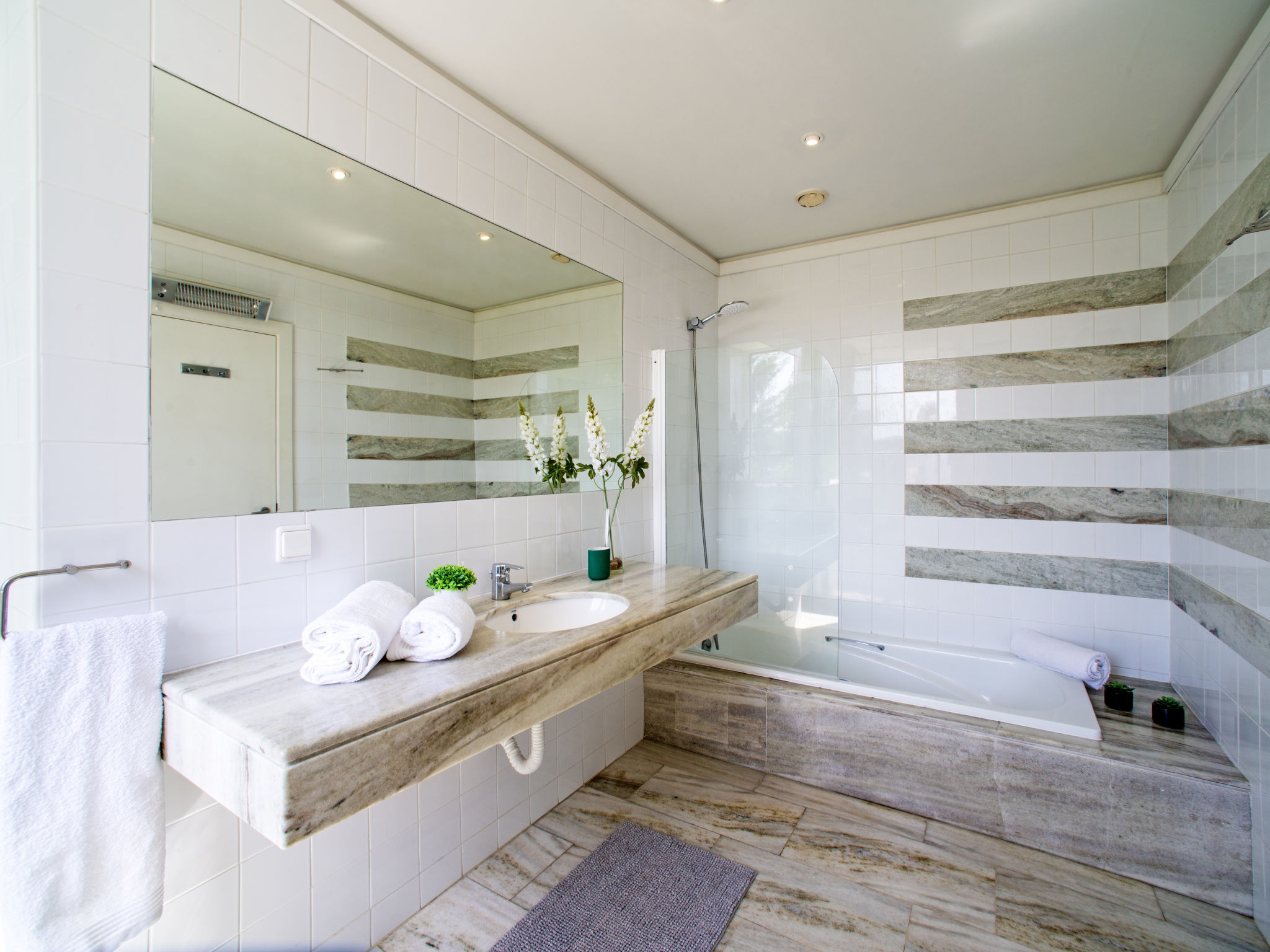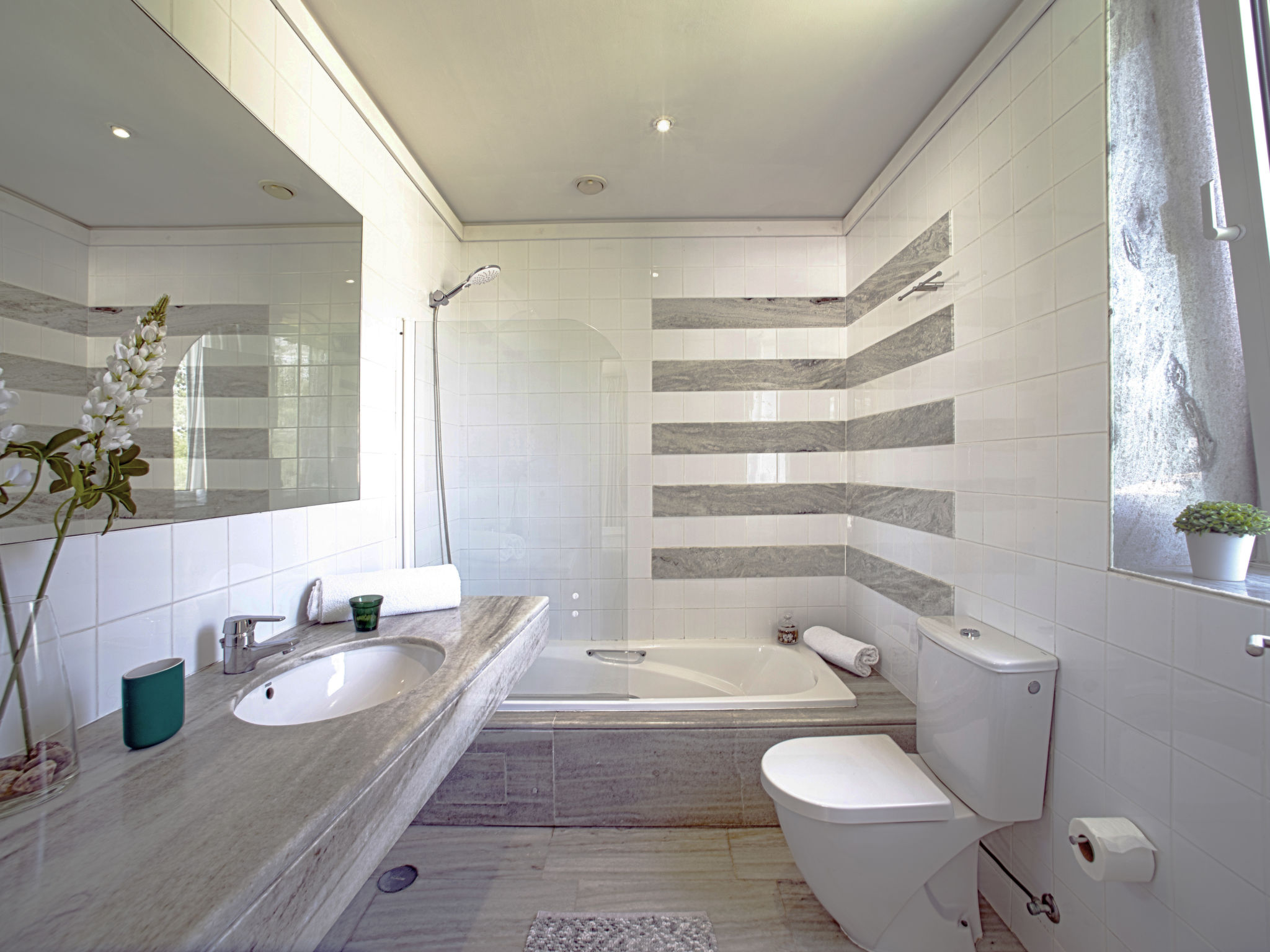 "Villa Golf", 5 rom hus 250 m2 på 2 etasjer. Lys, moderne og smakfullt møbler: stue/spisestue med, åpen peis, spisebord, satelit-TV og stereoanlegg. Utgang til hagen. Kjøkken (1 kokeplate, stekeovn, oppvaskmaskin, 3 gassbrennere, mikrobølgeovn, elektrisk kaffemaskin) med, spisebord. Utgang til hagen. Dusj/WC. Oppvarming er ikke tilgjengelig på alle rom. øverste etasje: (trapp uten gelender) stue med, satelit-TV. Utgang til terrassen. 1 rom med, 1 dobbeltseng (160 cm), bad/WC, elektrisk oppvarming og air-conditioning. Utgang til terrassen. 1 rom med 2 senger, bad/WC, elektrisk oppvarming og air-conditioning. Utgang til terrassen. 1 rom med 2 senger, bad/WC, elektrisk oppvarming og air-conditioning. Utgang til terrassen. Tregulv. 2 store terrasser. Terrassemøbler, grill, liggestoler (6). Fasiliteter: vaskemaskin, safe, høy barnestol barneseng. Internett (trådløs LAN [WLAN], gratis). Vennligst merk: røykfri bolig. Brannslukkningsapparat. 90393/AL